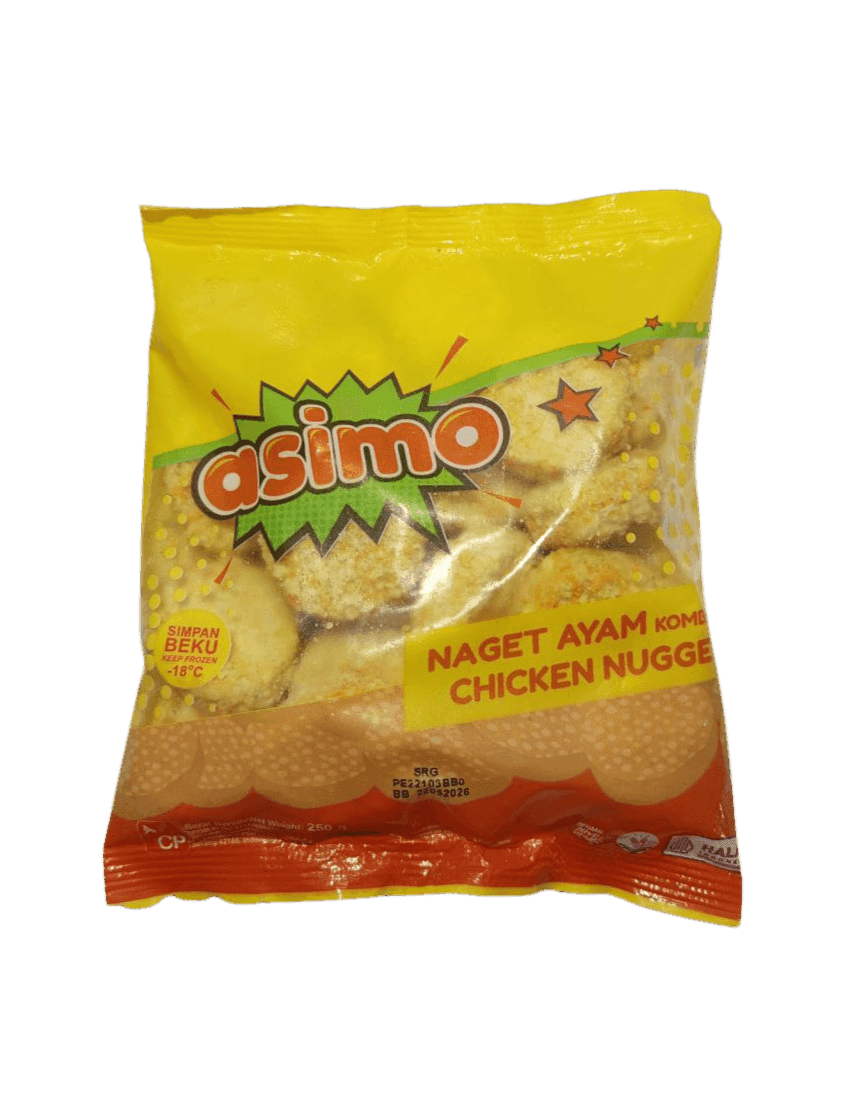 Nikmati kelezatan praktis dalam setiap gigitan dengan ASIMO Nugget Kombinasi! Hadir dalam kemasan 250 gram, nugget ini berisi kombinasi aneka bentuk dan rasa yang menggugah selera, cocok untuk camilan keluarga maupun bekal si kecil. Terbuat dari daging ayam pilihan yang diproses secara higienis, ASIMO Nugget Kombinasi kaya akan protein dan dibalut tepung roti renyah yang gurih saat digoreng.