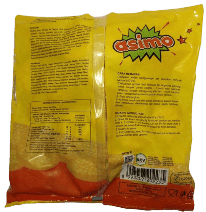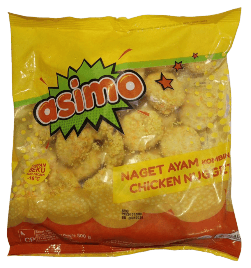 Nikmati kelezatan praktis dalam satu kemasan dengan ASIMO Nugget Kombinasi 500gr. Produk ini berisi beragam bentuk dan varian nugget ayam pilihan, seperti nugget stick, bintang, dan dinosaurus, yang disukai anak-anak maupun dewasa. Dibuat dari daging ayam berkualitas, dipadu dengan bumbu istimewa yang gurih dan renyah saat digoreng.