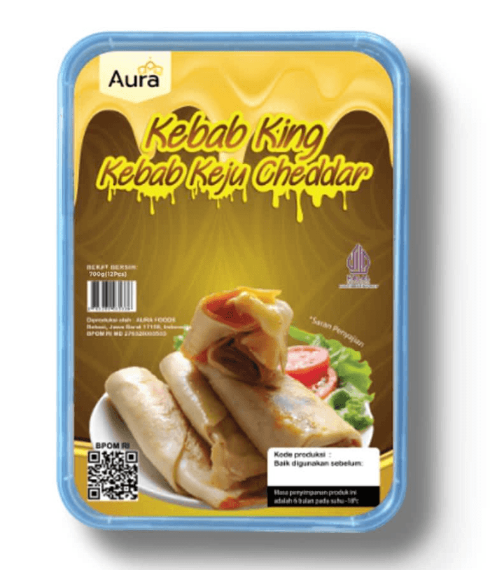 AURA KEBAB KING KEJU CHEDDAR adalah produk kebab beku premium yang diproduksi oleh Aura Foods. Varian rasa ini menghadirkan perpaduan rasa gurih otentik dari isian daging kebab dengan tambahan keju cheddar yang lembut dan lezat.