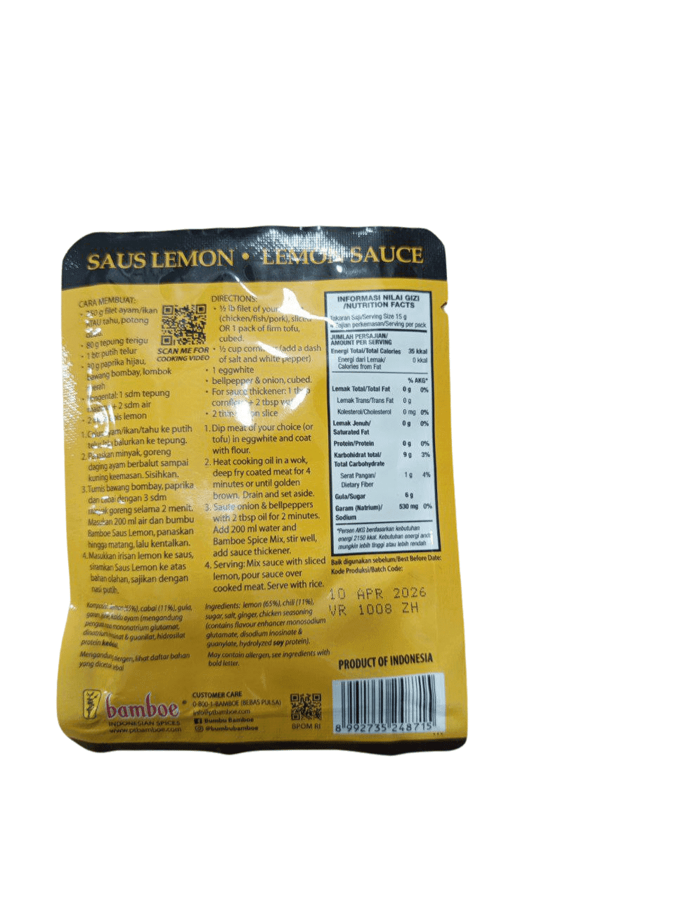 BAMBOE Saus Lemon 60gr – Segar, Asam Manis, dan Praktis