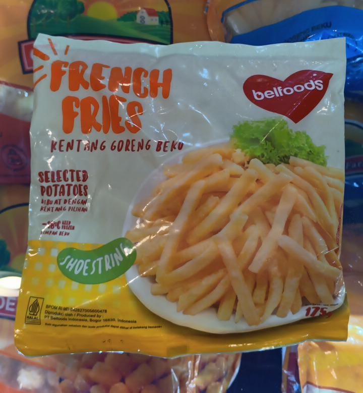 BELFOODS KENTANG GORENG SHOESTRING 175 GR adalah produk kentang goreng beku (French Fries) yang terbuat dari kentang pilihan berkualitas.1 Kentang ini dipotong dalam gaya shoestring atau potongan korek api yang tipis dan panjang, sehingga menghasilkan tekstur yang super renyah setelah digoreng.