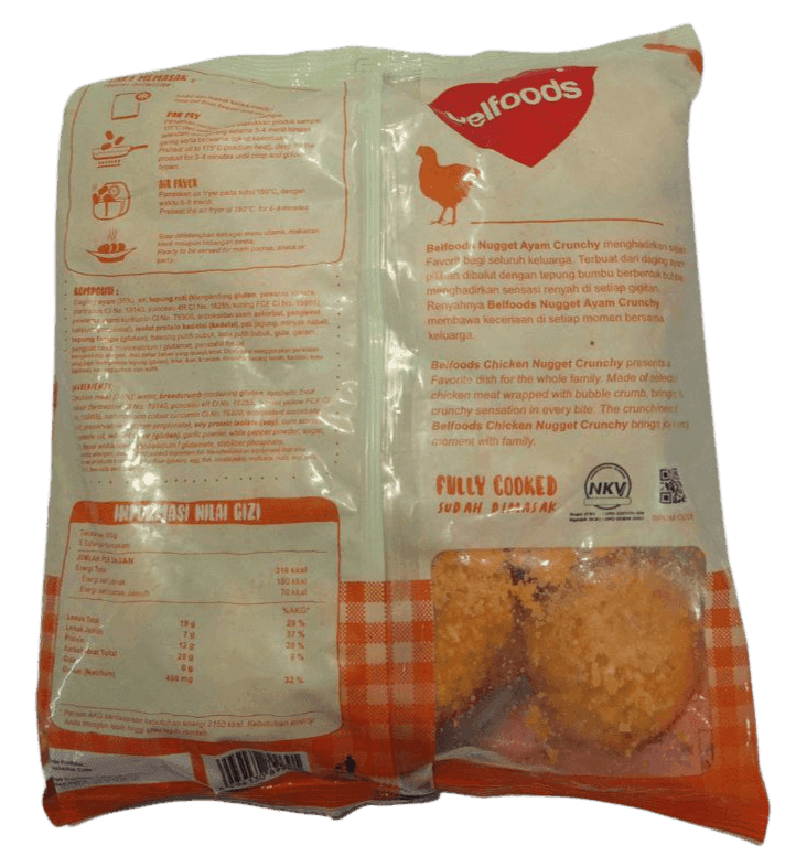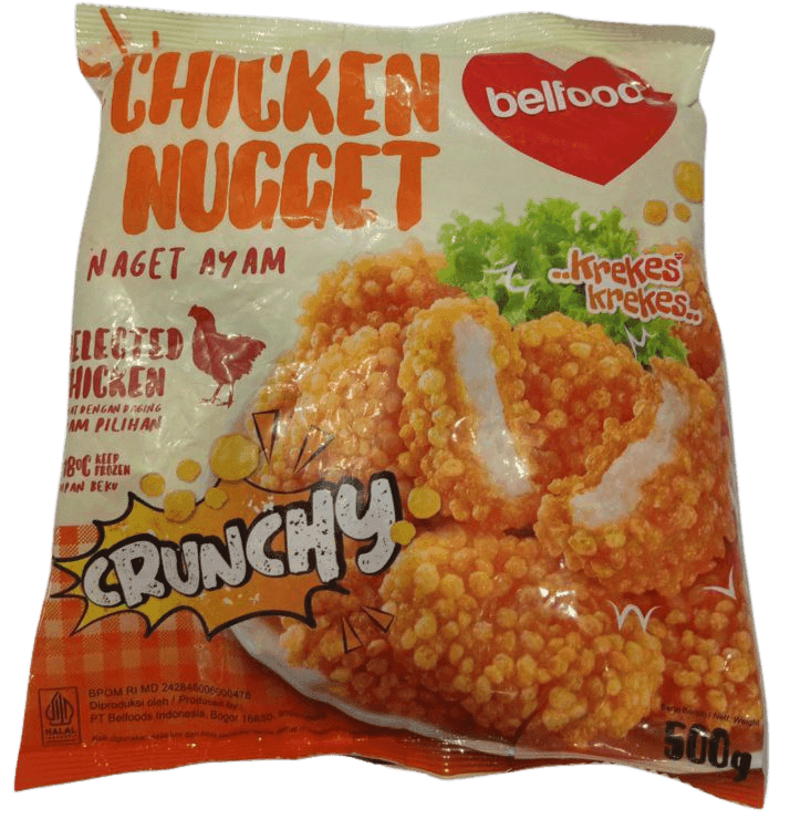 Rasakan kerenyahan maksimal dalam setiap gigitan dengan BELFOODS Nugget Crunchy! Terbuat dari daging ayam pilihan yang dibalut dengan tepung roti renyah, nugget ini cocok jadi lauk praktis atau camilan keluarga.