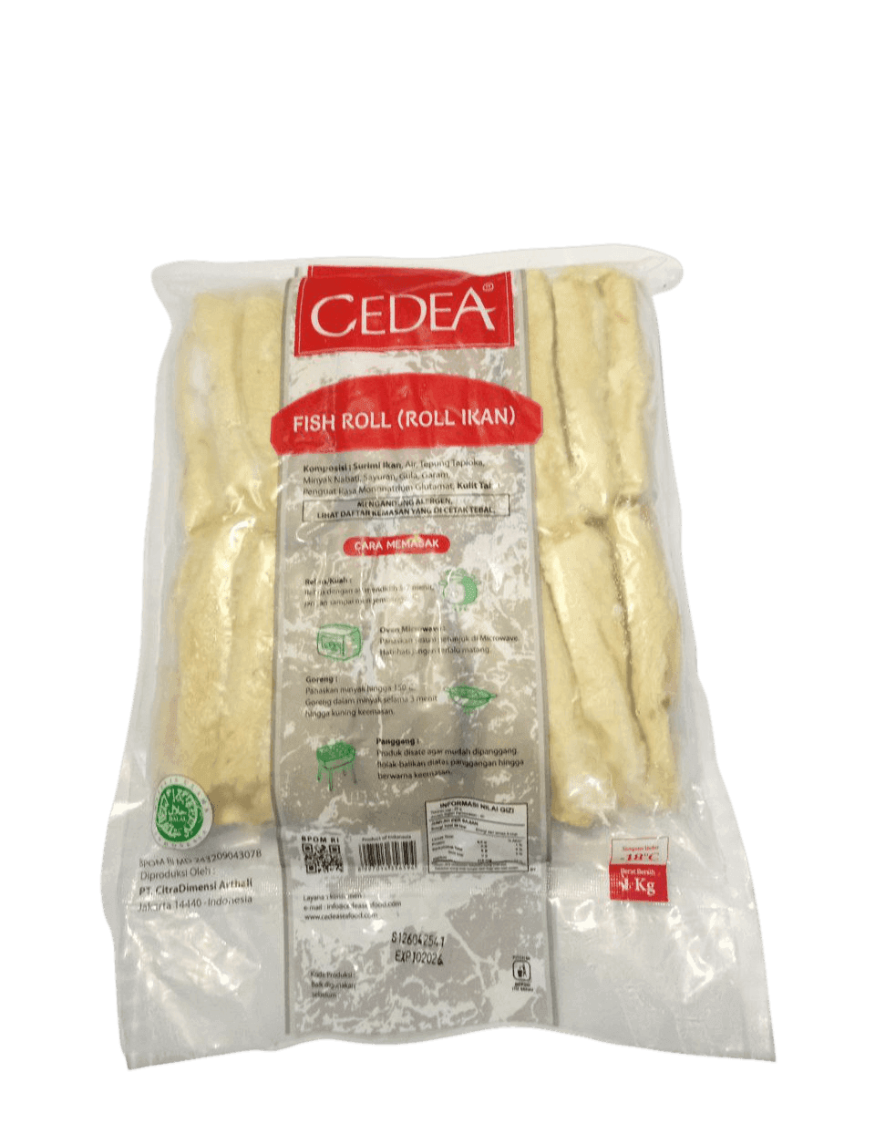CEDEA Fish Roll adalah olahan seafood berbentuk gulungan (roll) yang terbuat dari daging ikan berkualitas tinggi. Memiliki tekstur kenyal, rasa gurih yang lezat, dan bentuk menarik yang cocok untuk berbagai olahan makanan.