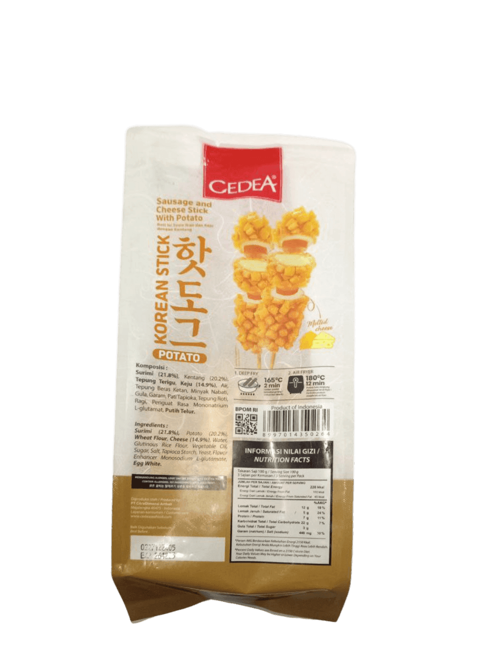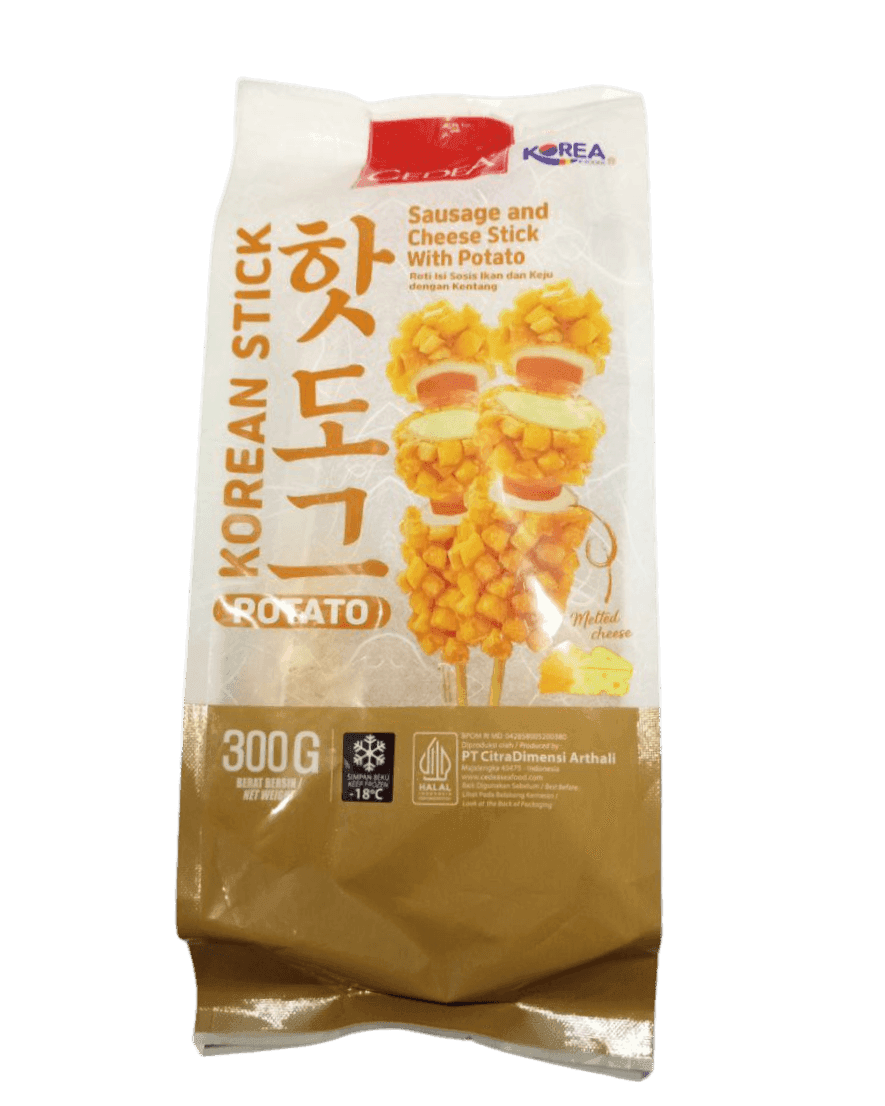 Nikmati sensasi camilan ala street food Korea dengan CEDEA Korean Stick Potato 300gr! Terbuat dari olahan ikan dan kentang pilihan, produk ini hadir dalam bentuk stik panjang dengan tekstur yang renyah di luar, lembut di dalam, dan rasa gurih yang bikin ketagihan.