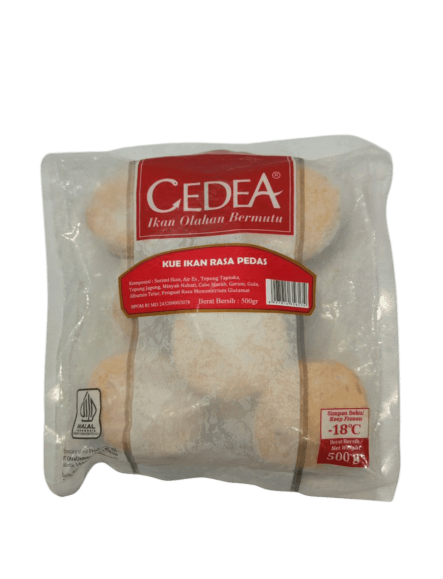 CEDEA Kue Ikan Pedas adalah olahan fishcake dengan rasa pedas yang menggugah selera, cocok untuk pecinta makanan bercita rasa kuat. Terbuat dari daging ikan segar pilihan dan bumbu pedas khas, produk ini memiliki tekstur kenyal dan rasa gurih pedas yang pas di lidah.