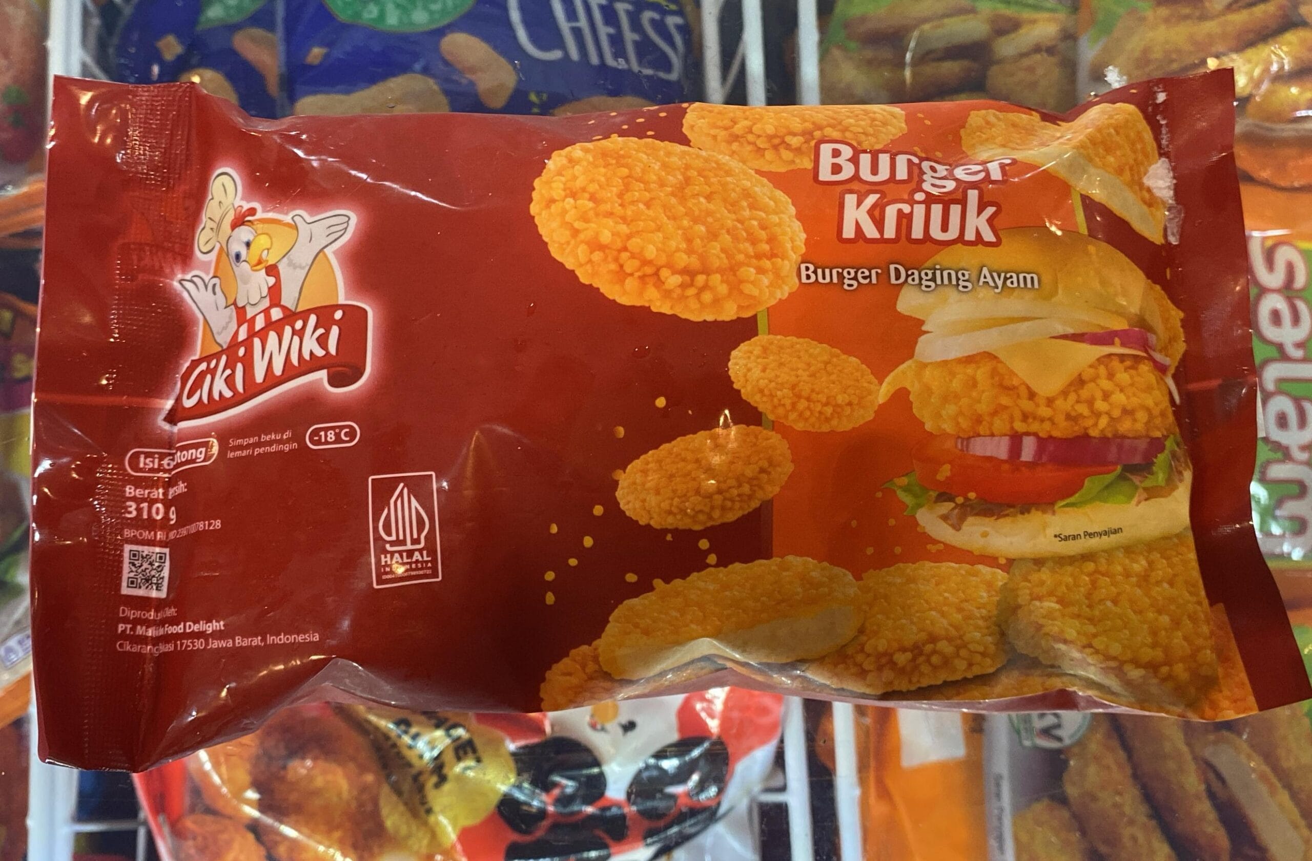 - Jenis: Daging Burger Ayam Krispi Beku (Chicken Burger Kriuk).