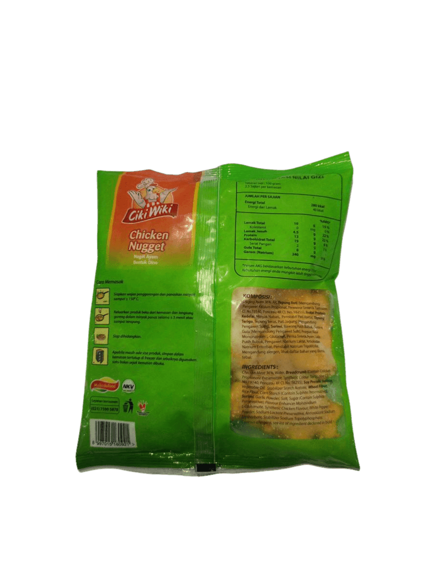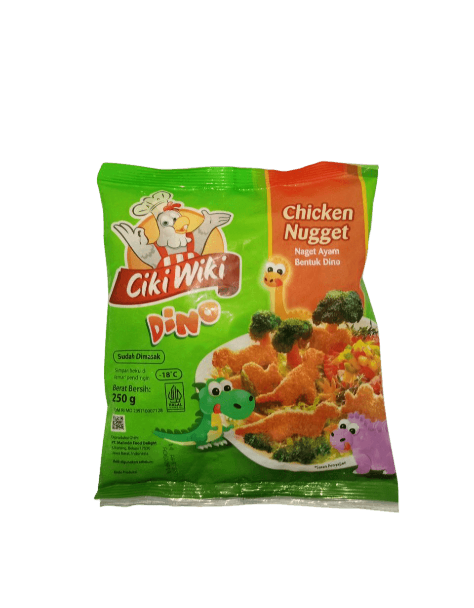 CIKI WIKI Nugget Dinosaurus adalah nugget ayam lezat dengan bentuk dinosaurus yang lucu dan menarik, cocok untuk anak-anak. Dibuat dari daging ayam pilihan dan dibalut dengan tepung renyah, nugget ini memberikan rasa gurih yang nikmat dan tekstur yang disukai si kecil.