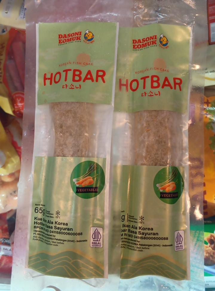 DASONI HOTBAR SAYUR (Vegetable) adalah produk olahan kue ikan (dikenal juga sebagai Eomuk atau Fish Cake) yang populer sebagai jajanan kaki lima (street food) di Korea. Varian ini diperkaya dengan potongan sayuran, memberikan tekstur dan rasa yang lebih bervariasi.