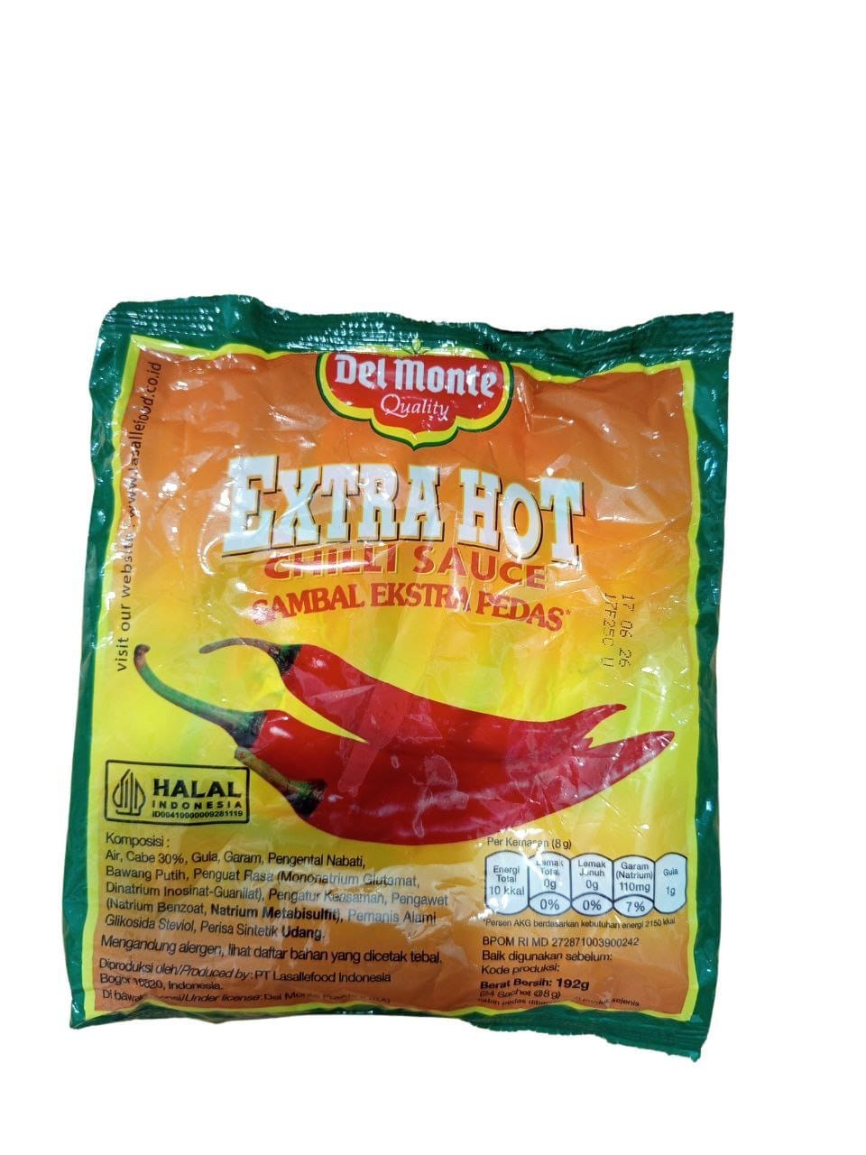 Rasakan sensasi pedas yang menggigit dari DELMONTE Extra Hot dalam kemasan praktis sachet! Dibuat dari bahan berkualitas dan racikan cabai pilihan, saus sambal ini menghadirkan rasa pedas yang kuat dan mantap, cocok untuk pecinta makanan pedas sejati.