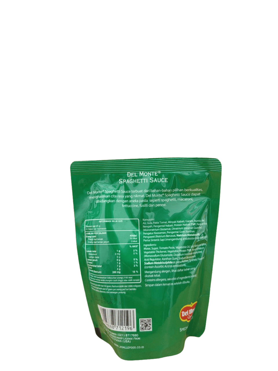 Nikmati cita rasa autentik Italia dalam setiap sajian dengan DELMONTE Spaghetti Sauce! Terbuat dari tomat pilihan yang matang sempurna dan dipadukan dengan bumbu khas, saus ini menghadirkan rasa gurih dan segar yang pas untuk berbagai jenis pasta.