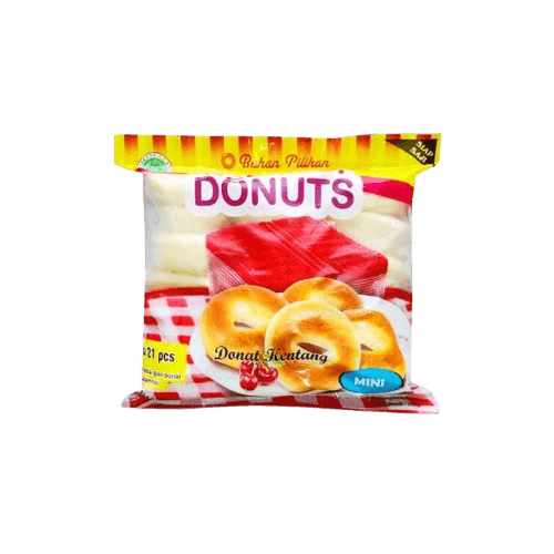 Setiap kemasan berisi 21 buah donut kecil, dengan berat sekitar 500–520 gram per pack