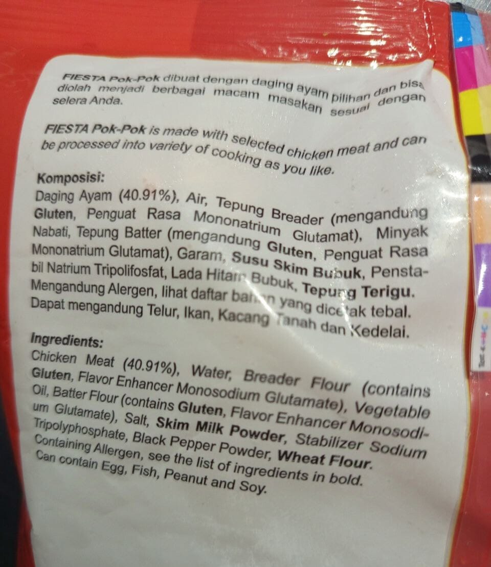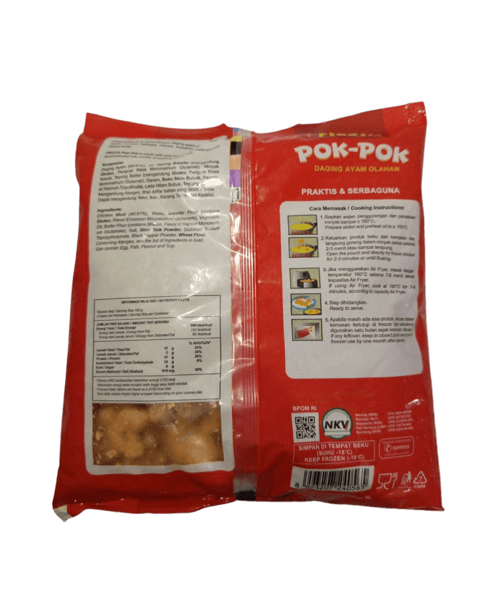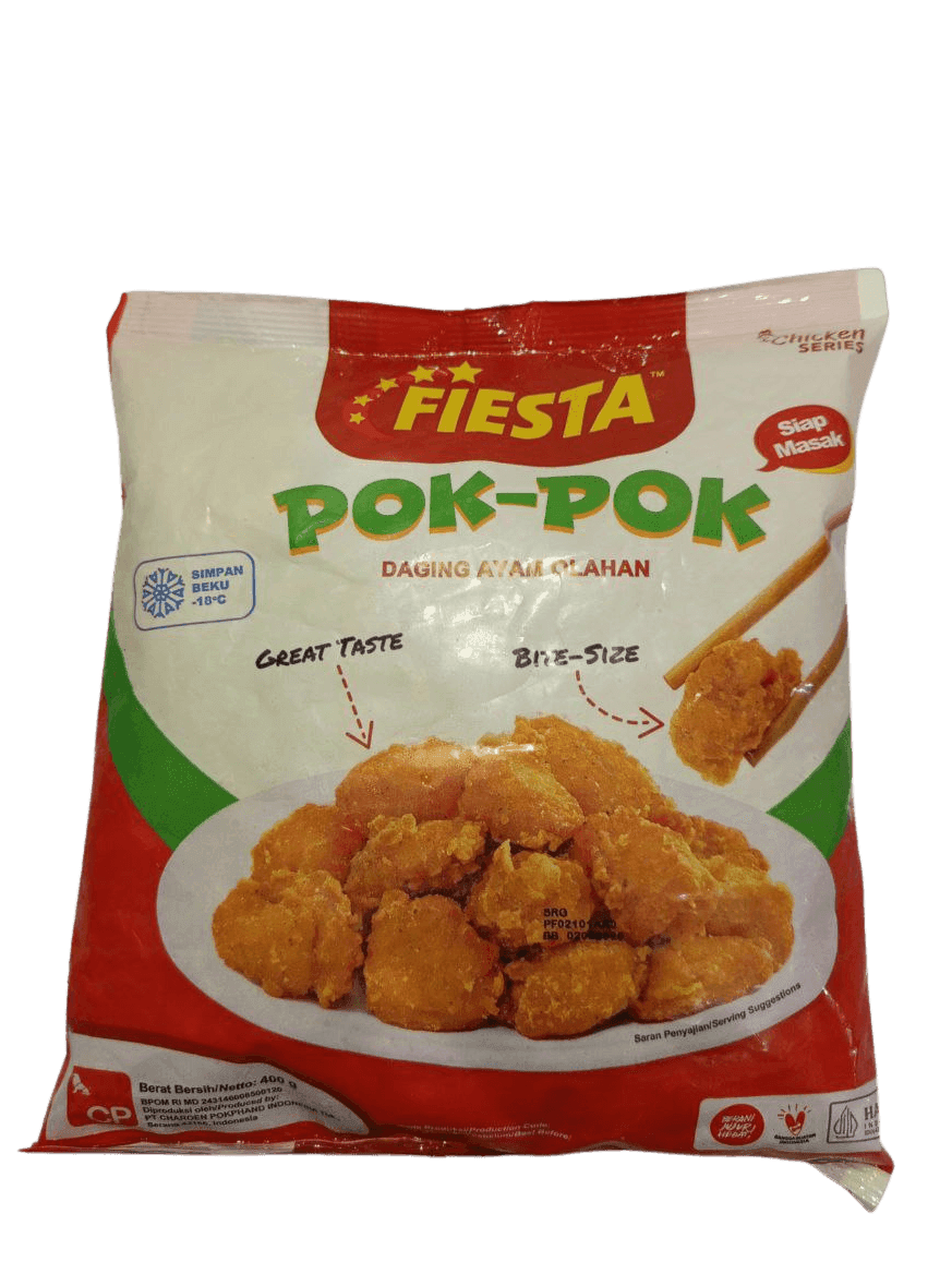 Nikmati sensasi kelezatan camilan ayam ala restoran dalam setiap gigitan FIESTA Chicken Pok Pok! Terbuat dari potongan daging ayam pilihan yang dibalut tepung renyah berbumbu khas, Chicken Pok Pok ini cocok dijadikan camilan, lauk makan, atau menu bekal keluarga. Praktis dan mudah disiapkan—cukup digoreng dalam minyak panas hingga keemasan dan siap disantap!
