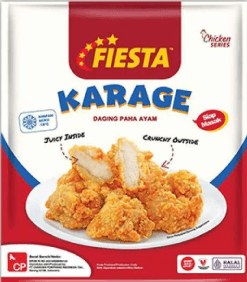 FIESTA CHICKEN KARAGE dalam kemasan $\mathbf{200 \text{ gram}}$ adalah versi hemat dan praktis dari produk ayam olahan beku siap saji yang terinspirasi dari hidangan Jepang, yaitu Karaage.