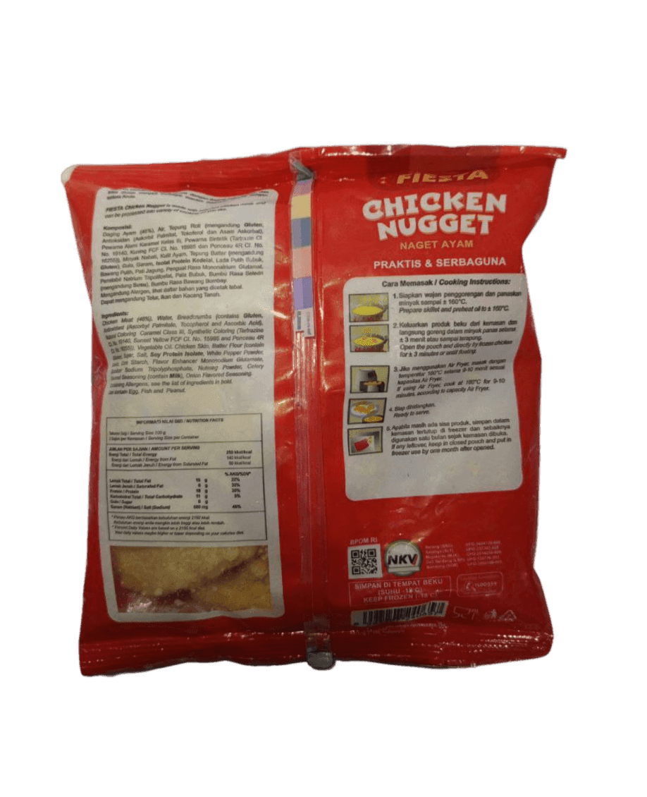 FIESTA Nugget 400gr adalah pilihan tepat untuk sajian praktis dan lezat di rumah. Terbuat dari daging ayam pilihan, dibalut tepung renyah khas Fiesta, menghasilkan nugget yang gurih, empuk, dan disukai semua usia. Cocok untuk bekal anak, camilan, atau lauk cepat saji.