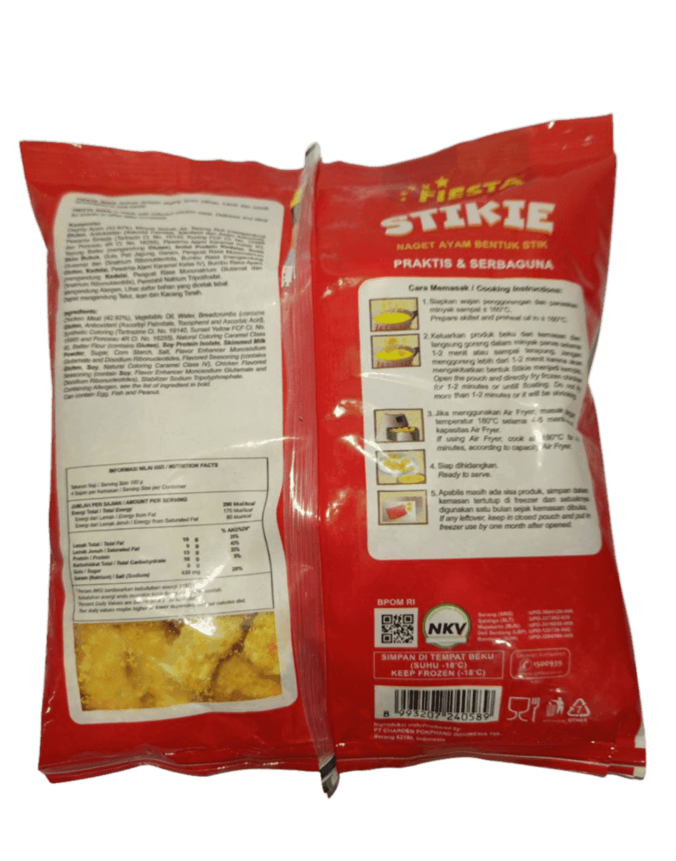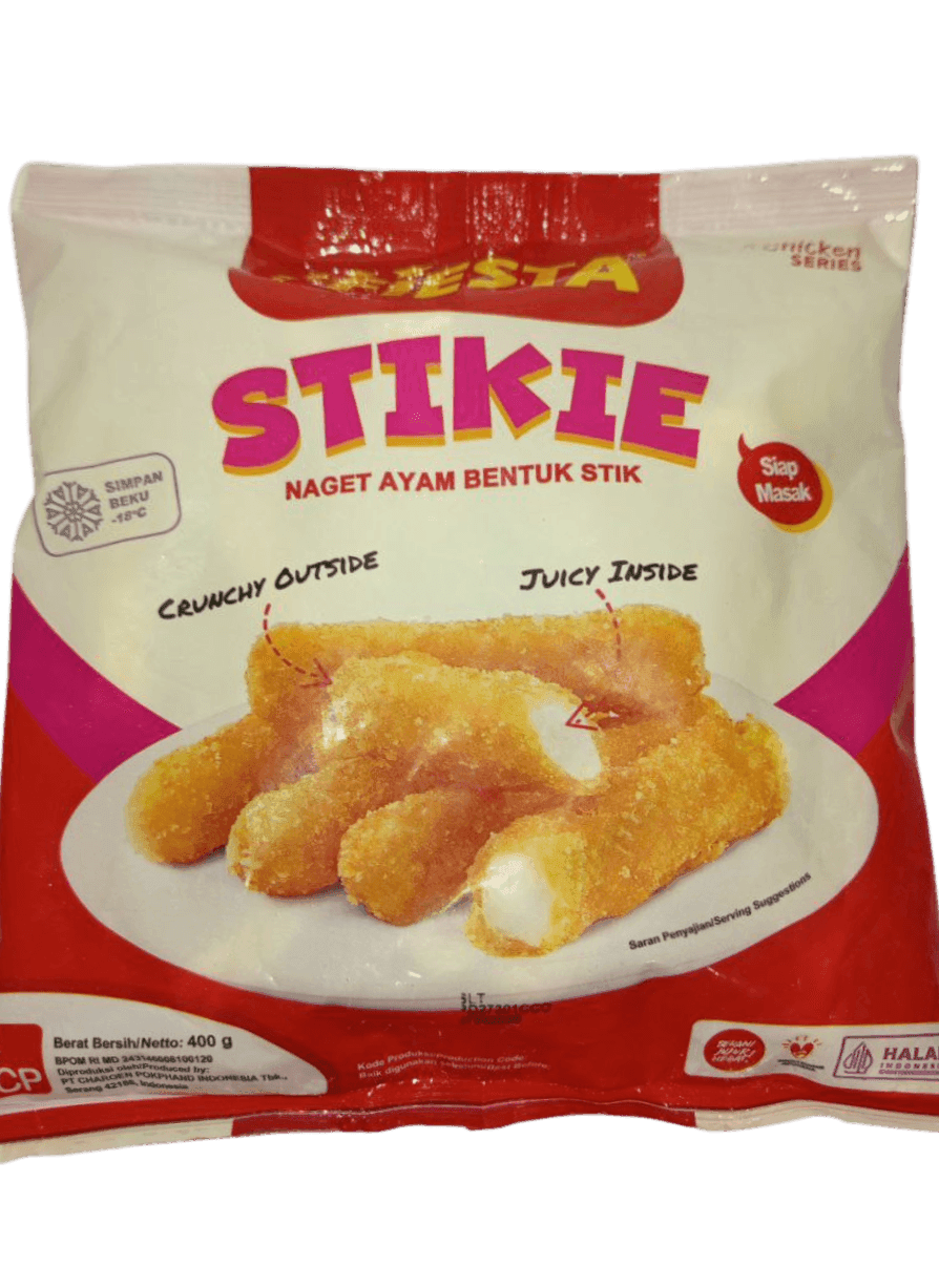 FIESTA Stikie adalah stik ayam goreng siap masak dengan balutan tepung renyah dan bumbu gurih khas, cocok untuk camilan, bekal anak, atau sajian praktis di rumah. Terbuat dari daging ayam pilihan, dipotong kecil memanjang seperti stik, membuatnya mudah disantap dan disukai semua usia.