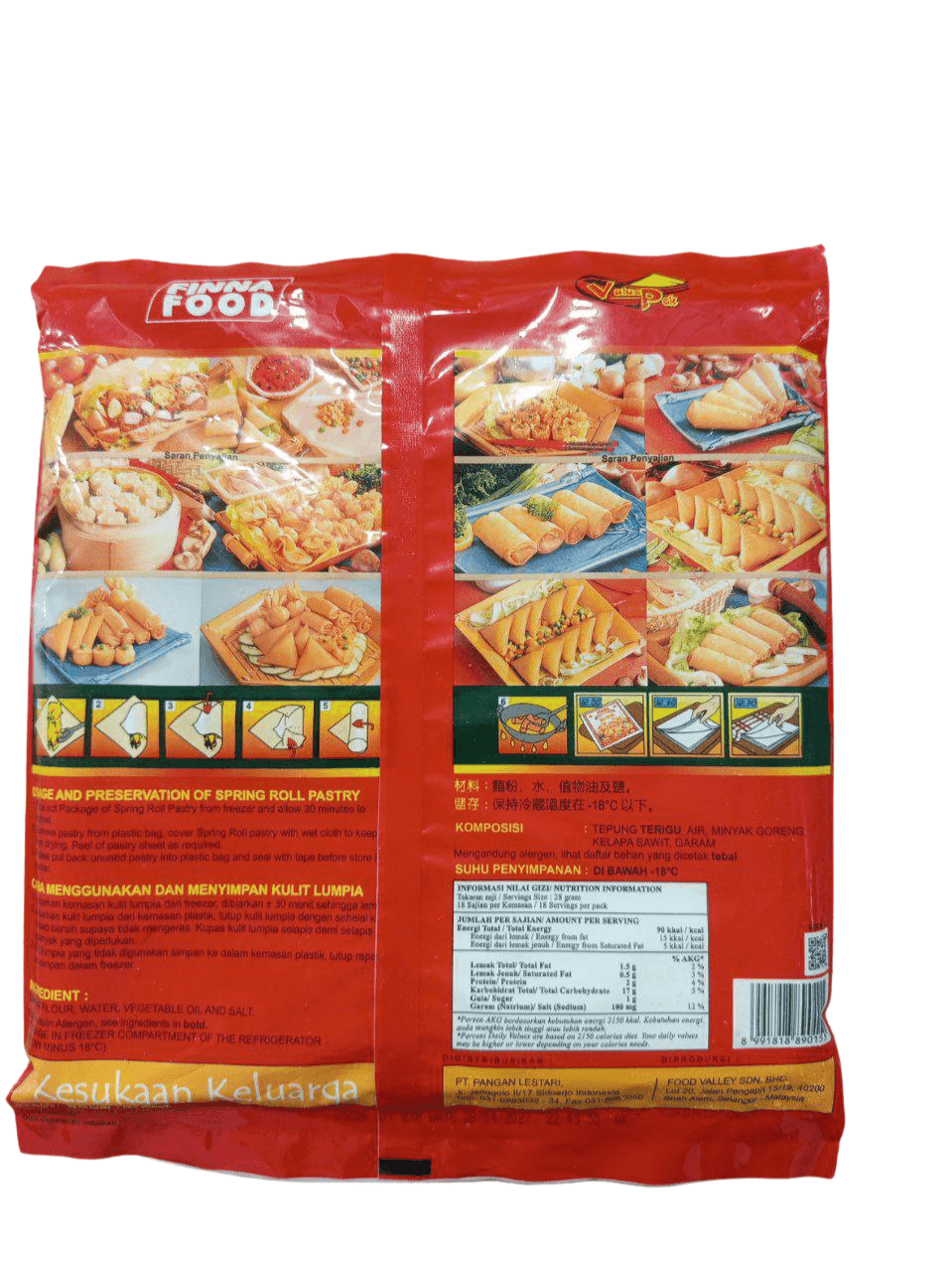 Nikmati kemudahan membuat lumpia dan aneka kreasi camilan lainnya dengan FINNA Kulit Lumpia 215mm. Dibuat dari bahan berkualitas pilihan, kulit lumpia ini memiliki tekstur yang lentur, tipis, dan tidak mudah sobek, cocok untuk digoreng maupun dikukus.
