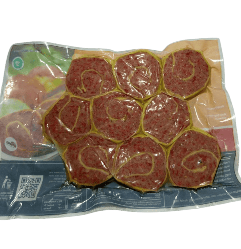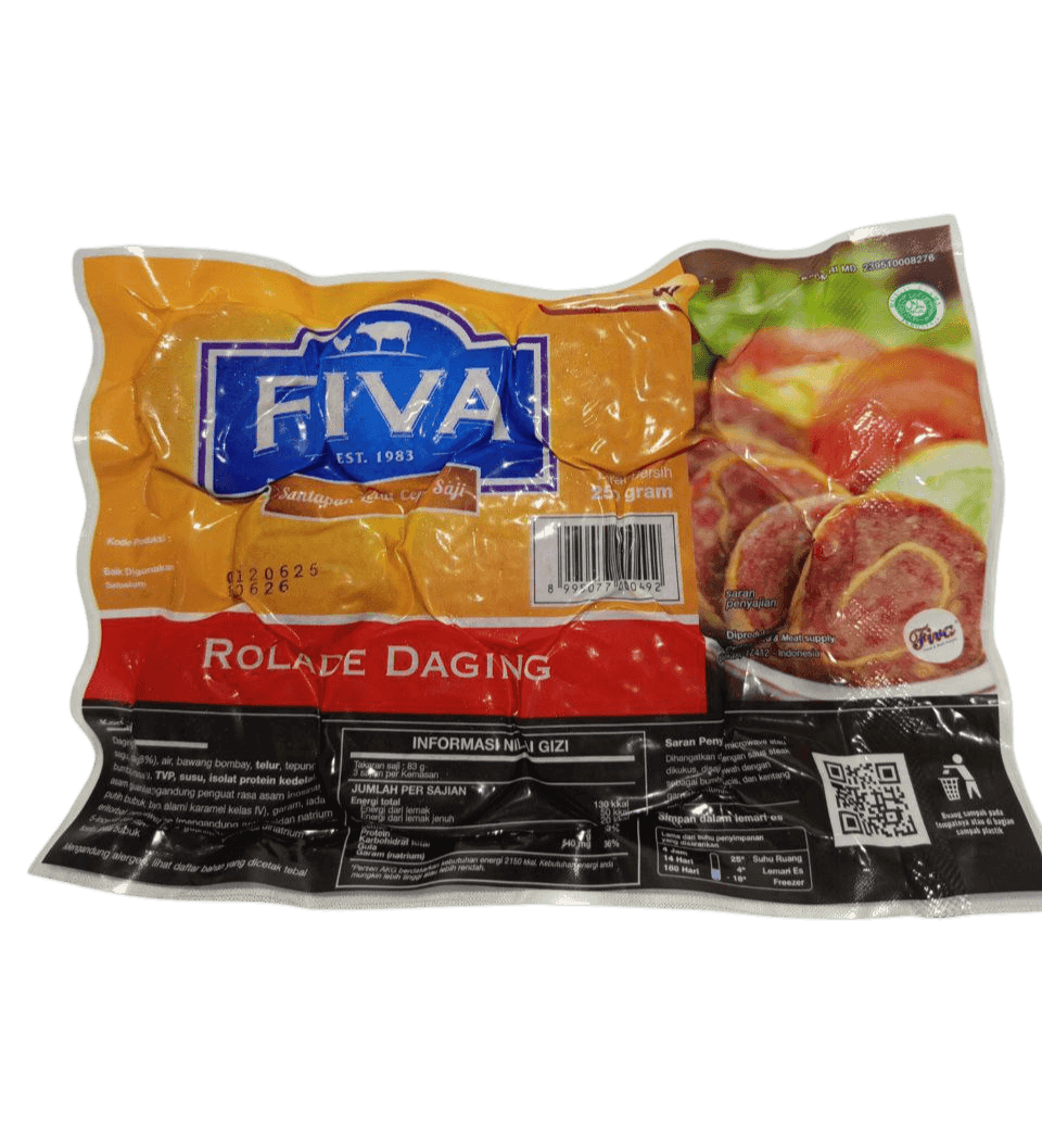 Nikmati cita rasa lezat dan kaya protein dari FIVA Rolade Sapi 250gr, pilihan sempurna untuk hidangan praktis dan istimewa. Terbuat dari daging sapi pilihan yang dibumbui dengan rempah khas, dibalut dengan telur dadar lembut, dan diproses secara higienis untuk menjaga kualitas dan rasa.