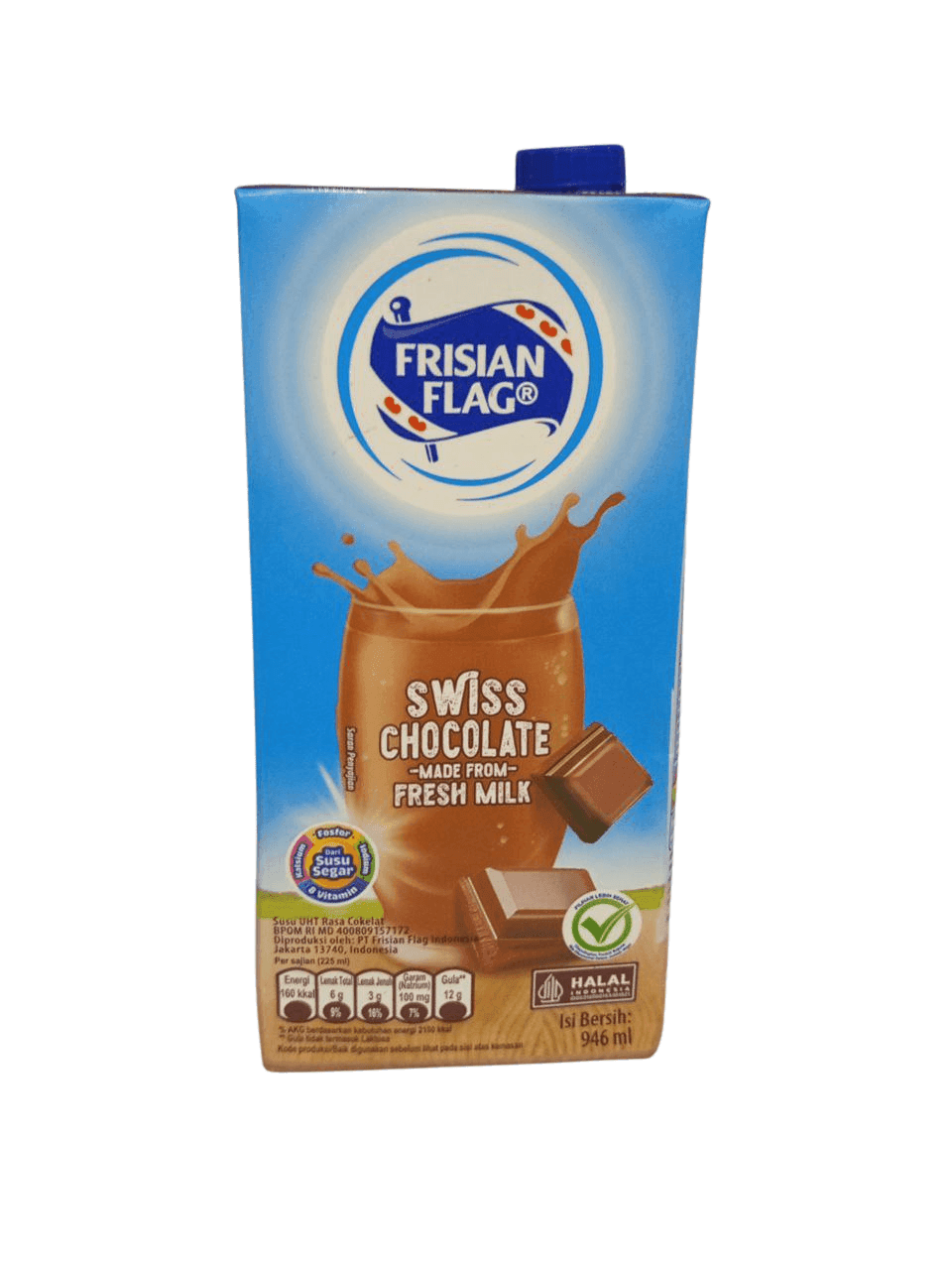 Nikmati kelezatan cokelat Swiss dalam setiap tegukan susu UHT dari Frisian Flag. Dikemas dalam ukuran 946ml, Frisian Flag UHT Swiss Choco menghadirkan rasa cokelat yang kaya dan creamy, cocok untuk dinikmati oleh seluruh keluarga. Terbuat dari susu berkualitas tinggi dengan tambahan rasa cokelat istimewa, minuman ini mengandung kalsium, protein, serta vitamin penting seperti A, D, dan B2 untuk mendukung pertumbuhan dan daya tahan tubuh.
