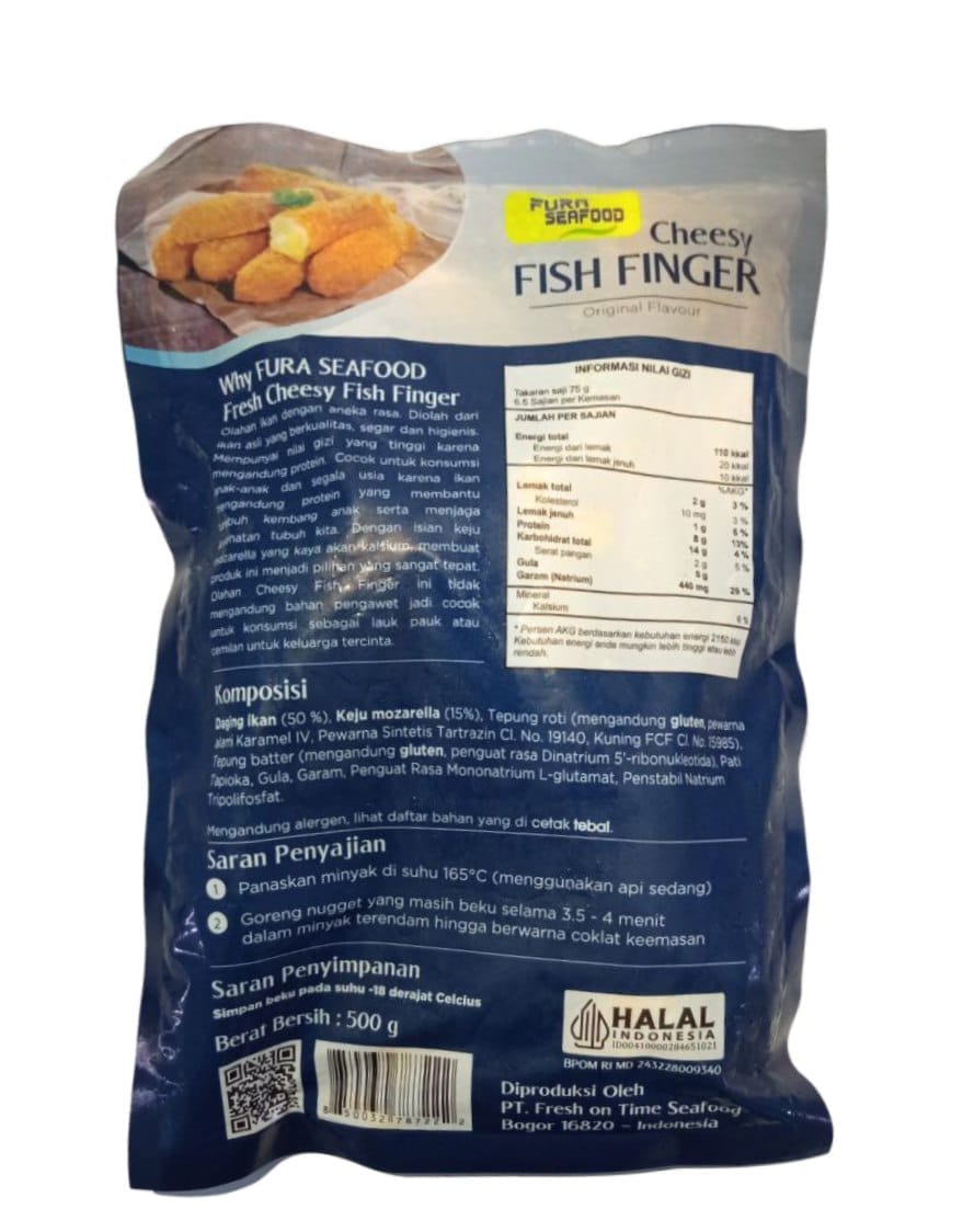 Dengan tekstur crunchy di luar dan lembut cheesy di dalam, FURA Cheesy Fish Finger siap memanjakan lidah Anda. Praktis dan mudah disiapkan—cukup digoreng beberapa menit, langsung siap disantap!