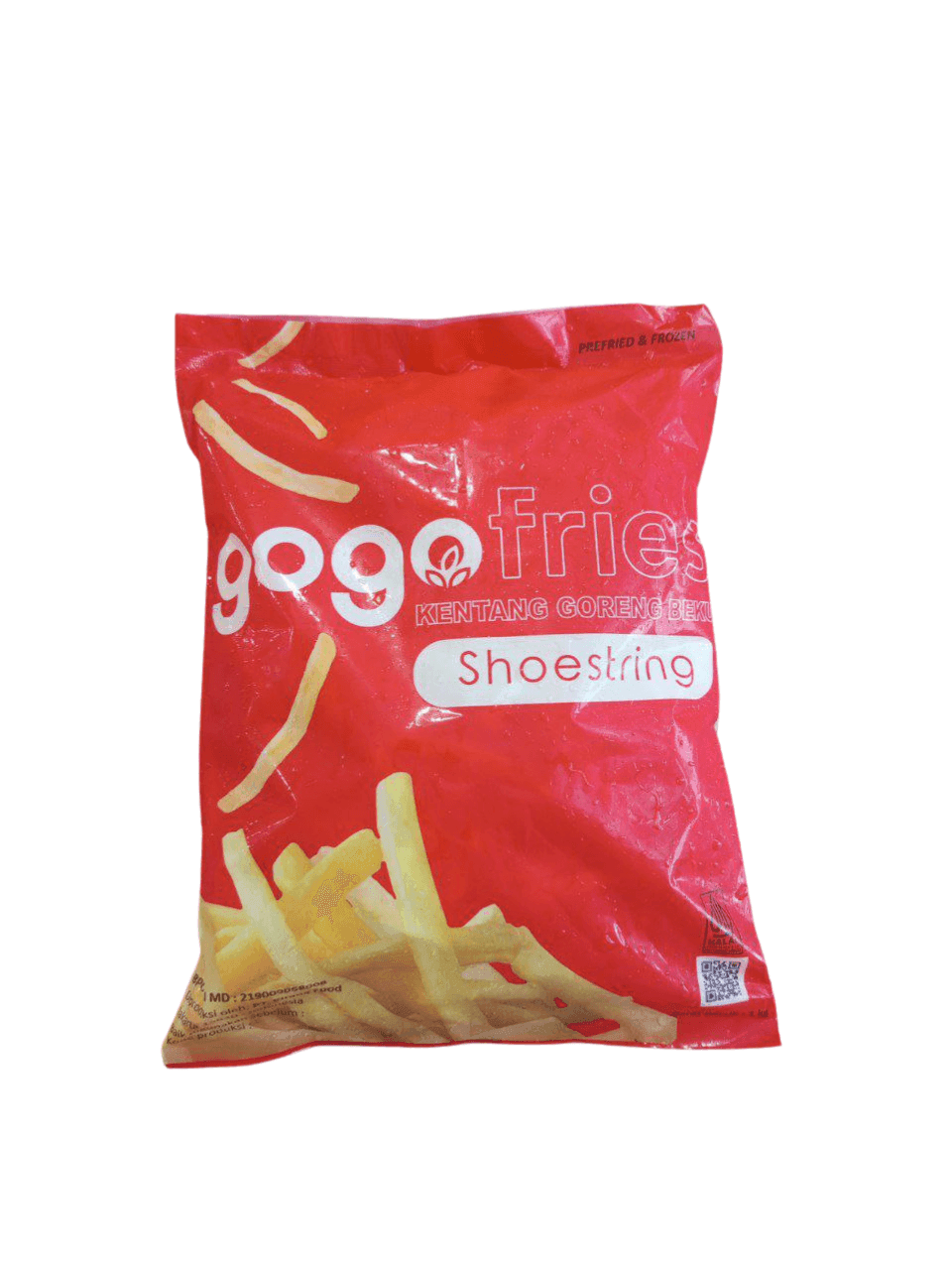 Kentang goreng ala restoran kini bisa kamu nikmati di rumah! GOGO Shoestring adalah kentang beku berbentuk tipis memanjang (shoestring cut) yang renyah di luar dan lembut di dalam saat digoreng. Terbuat dari kentang pilihan dan diolah secara higienis, produk ini cocok sebagai camilan, pelengkap hidangan utama, atau menu jualan makanan siap saji.