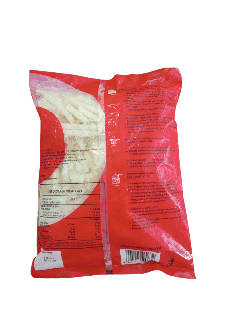 Cara penyajian: Goreng dalam minyak panas 175°C selama 3-5 menit hingga keemasan