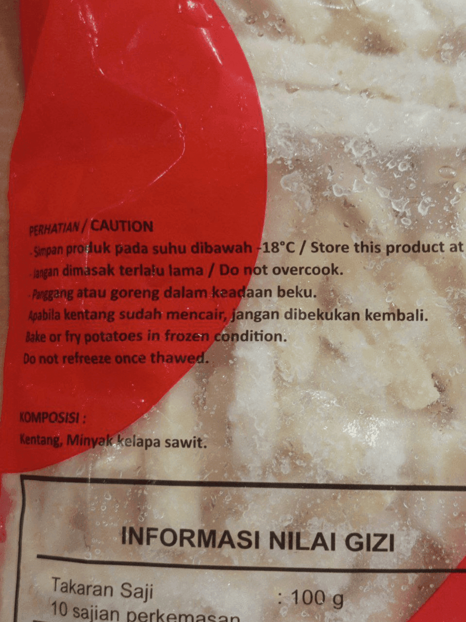 Simpan di suhu beku (-18°C) untuk menjaga kesegaran
