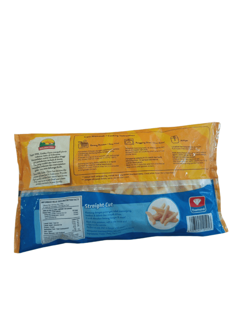 Nikmati kerenyahan kentang goreng ala restoran di rumah dengan GOLDENFARM FF Straight Cut 1kg! Dibuat dari kentang pilihan berkualitas, produk ini dipotong lurus dan seragam sehingga matang sempurna dan renyah di setiap gigitannya. Cocok untuk dijadikan camilan, pelengkap hidangan utama, atau sajian spesial di acara keluarga.