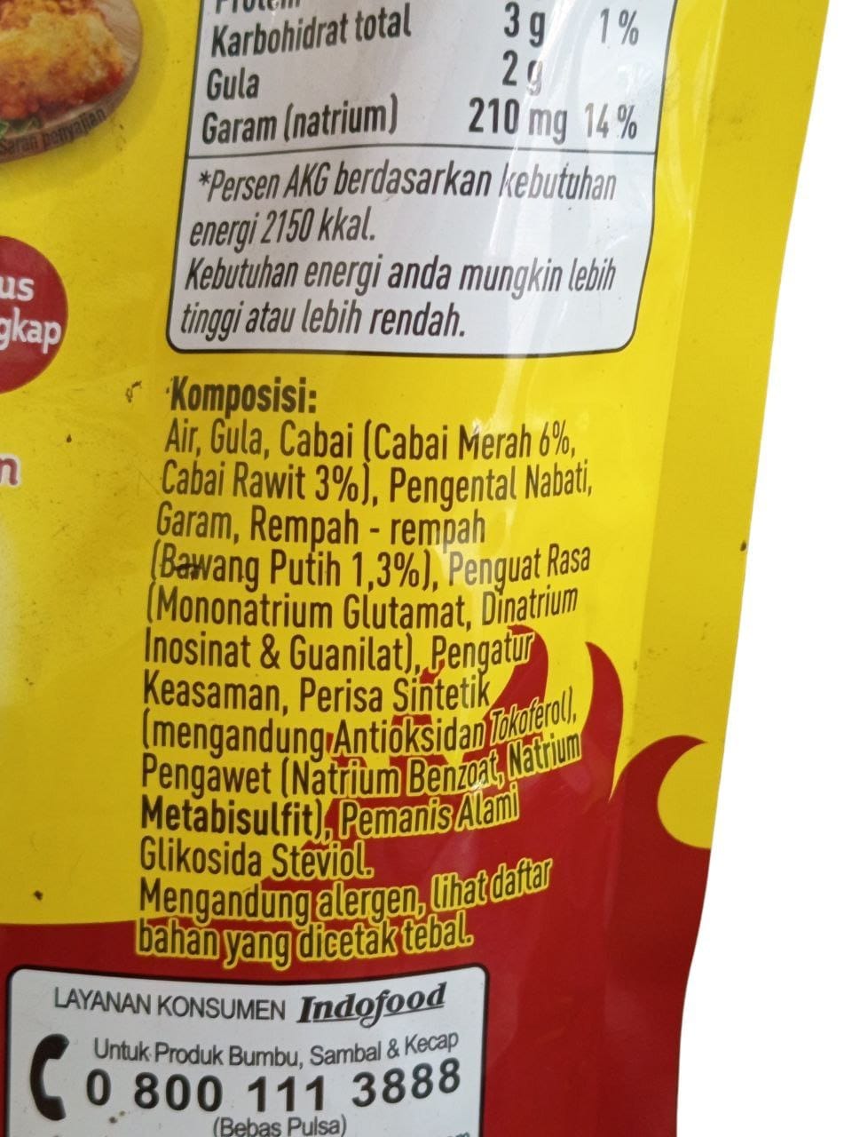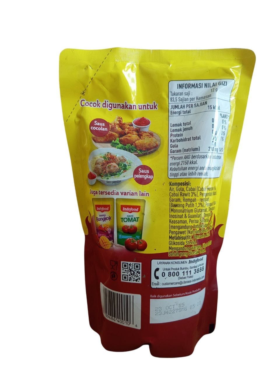 Diproduksi oleh Indofood, merek terpercaya di Indonesia, sambal ini dibuat dari cabai pilihan, bawang, dan bumbu khas yang diolah dengan cita rasa autentik dan kualitas terbaik. Teksturnya kental dan rasanya tajam, sangat pas untuk teman makan gorengan, ayam, mie, nasi, dan berbagai hidangan lainnya.
