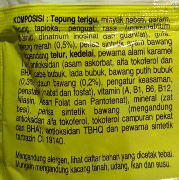 Petunjuk penyajian: Rebus mi selama 3 menit, tiriskan, lalu campur dengan bumbu yang telah disediakan.