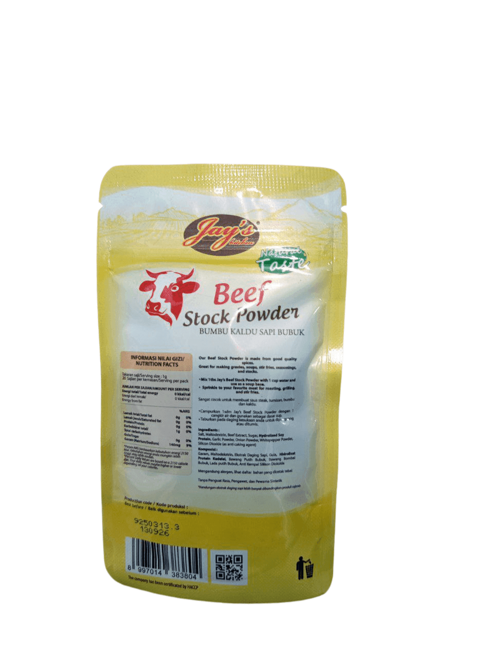 JAY’S Beef Stock Powder adalah rahasia kelezatan masakan yang tak tertandingi. Tambahkan satu sendok kecil, dan rasakan perbedaannya!