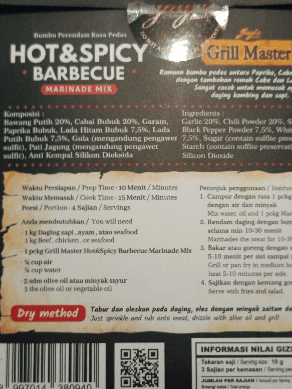 JAY’S Hot & Spicy Barbeque 30gr – Pedasnya Nendang, Rasanya Nagih!