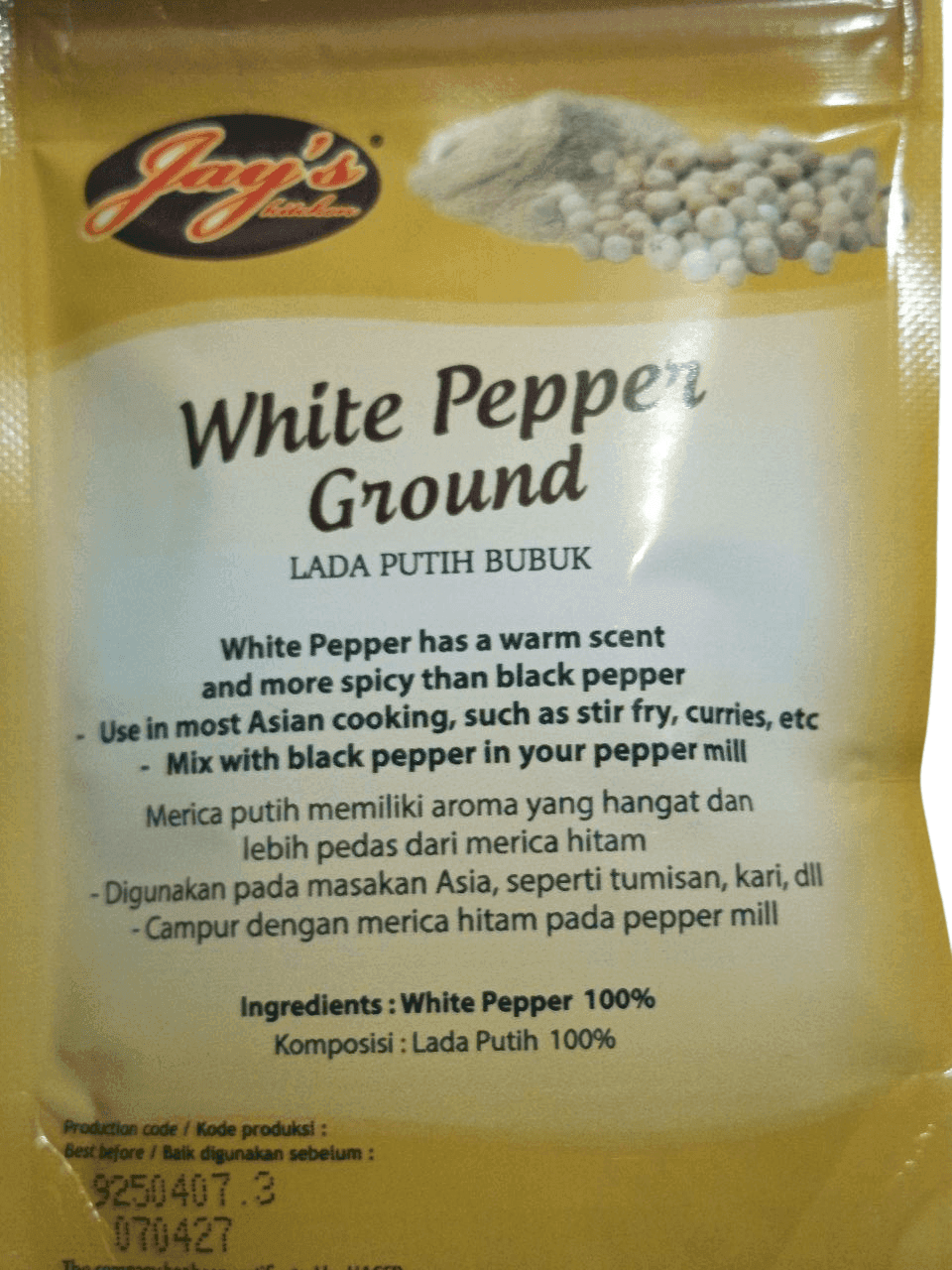 Tambahkan sentuhan rasa pedas yang lembut dan khas pada masakan Anda dengan JAY’S White Pepper Ground. Terbuat dari lada putih pilihan berkualitas tinggi yang dihaluskan sempurna, produk ini memberikan aroma harum dan cita rasa tajam yang pas untuk berbagai hidangan, mulai dari sup, tumisan, hingga masakan tradisional dan modern.