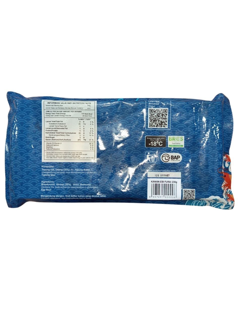 Cukup goreng dalam minyak panas selama beberapa menit, Ebi Furai siap disajikan dengan saus favorit Anda. Dikemas dalam ukuran praktis 230 gram, cocok untuk dinikmati kapan saja.