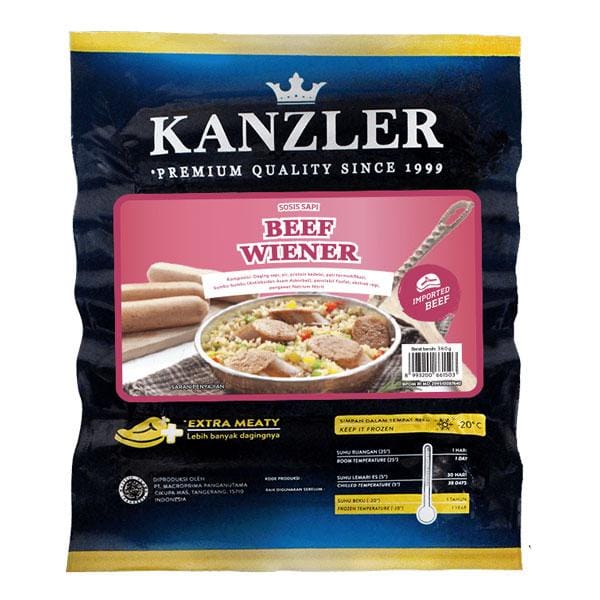 Nikmati sensasi sosis premium dengan KANZLER Beef Wiener, dibuat dari daging sapi pilihan dan bumbu khas Eropa yang menghadirkan cita rasa gurih dan juicy di setiap gigitan. Cocok untuk dijadikan camilan, hidangan sarapan, atau bahan pelengkap menu spesial keluarga.