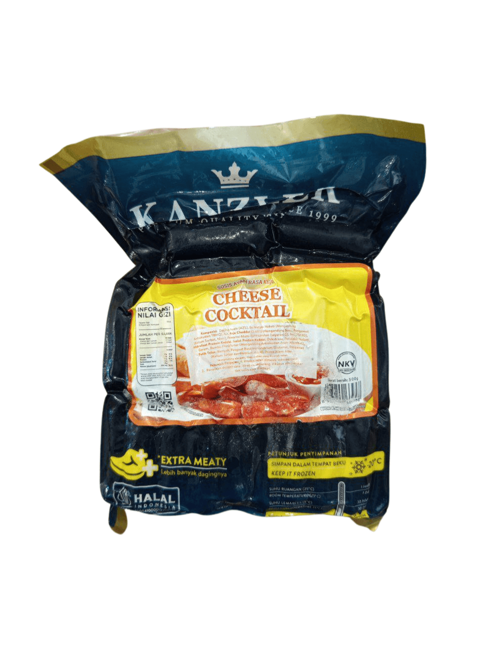 Nikmati kelezatan sosis premium dengan sentuhan keju yang menggoda! KANZLER Cheese Cocktail 500gr adalah pilihan sempurna untuk camilan lezat maupun hidangan spesial keluarga. Terbuat dari daging ayam dan sapi berkualitas tinggi, dipadukan dengan keju cheddar asli, menghasilkan rasa gurih dan tekstur yang juicy di setiap gigitan.
