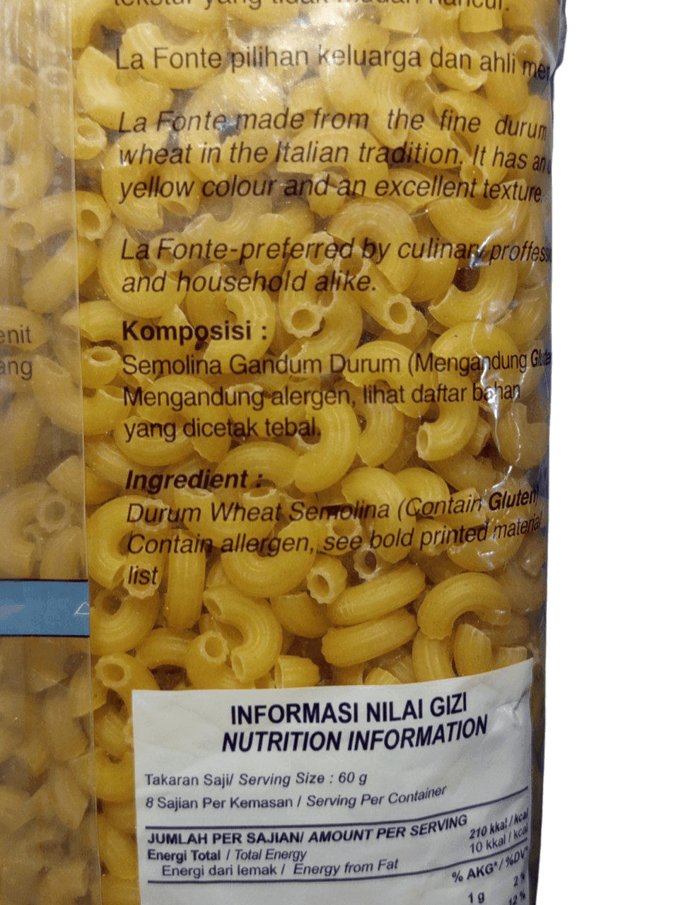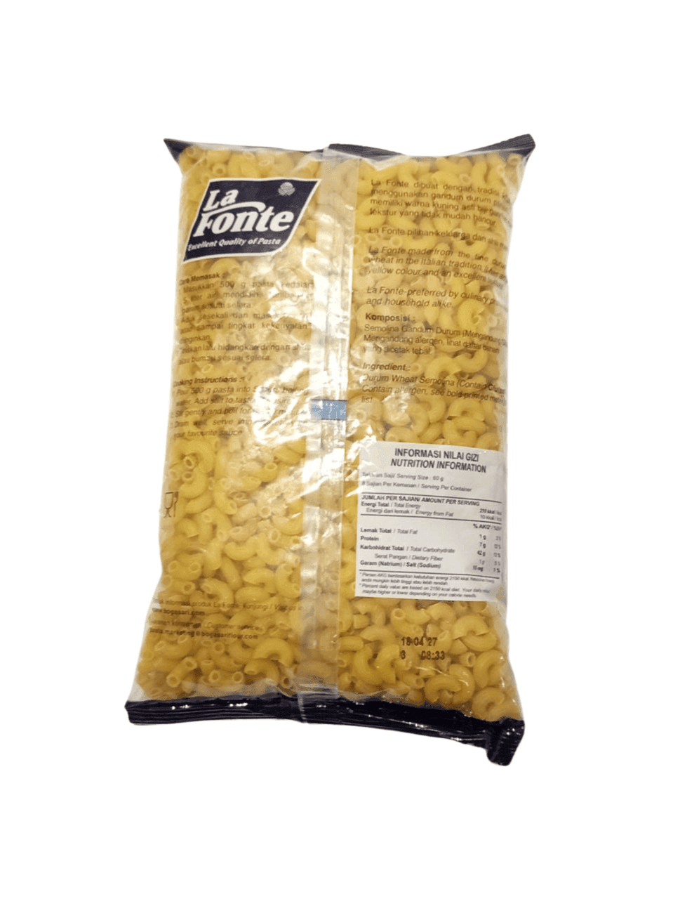 Hadirkan cita rasa Italia ke dalam hidangan Anda dengan LA FONTE Fusilli No.202. Pasta berbentuk spiral ini terbuat dari 100% semolina gandum durum pilihan yang berkualitas tinggi, menghasilkan tekstur al dente yang sempurna setelah dimasak. Bentuk fusilli yang unik mampu menyerap saus dengan baik, menjadikannya pilihan ideal untuk berbagai kreasi pasta seperti salad, baked pasta, hingga pasta dengan saus krim atau tomat.
