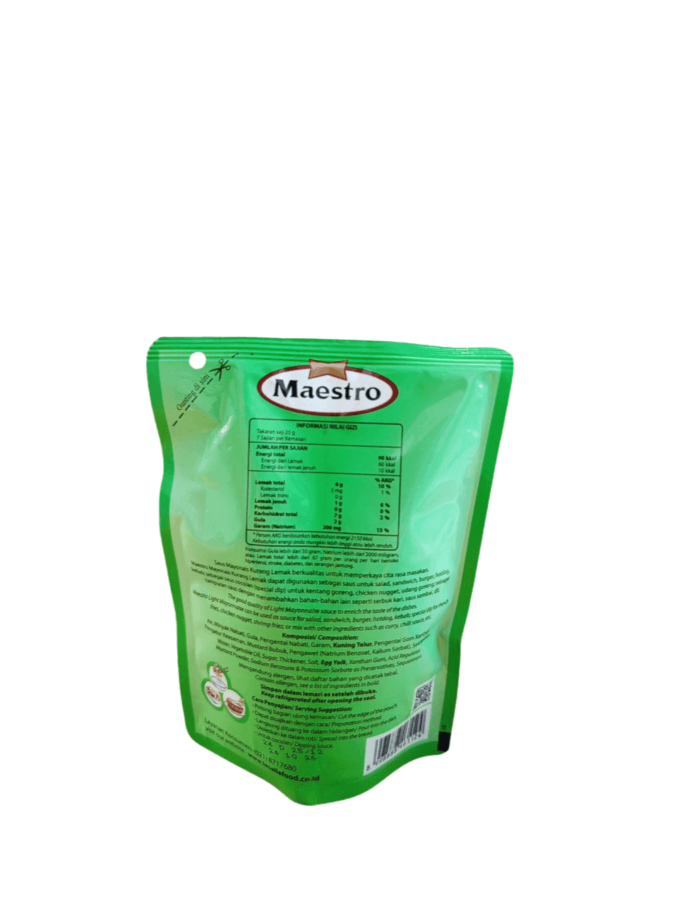 Rasakan kelembutan rasa yang creamy dan gurih dari MAESTRO Mayonnaise dalam kemasan praktis pouch 180 gram. Dibuat dari bahan-bahan pilihan berkualitas, mayo ini cocok untuk berbagai sajian seperti sandwich, salad, burger, kentang goreng, hingga pelengkap camilan favorit Anda.