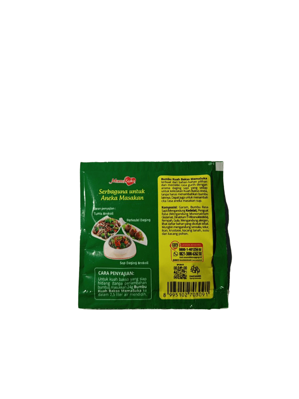 Nikmati kelezatan kuah bakso ala warung favorit tanpa repot! MAMASUKA Bumbu Kuah Bakso hadir dengan perpaduan bumbu rempah pilihan yang diracik sempurna untuk menghasilkan kuah gurih, hangat, dan sedap.