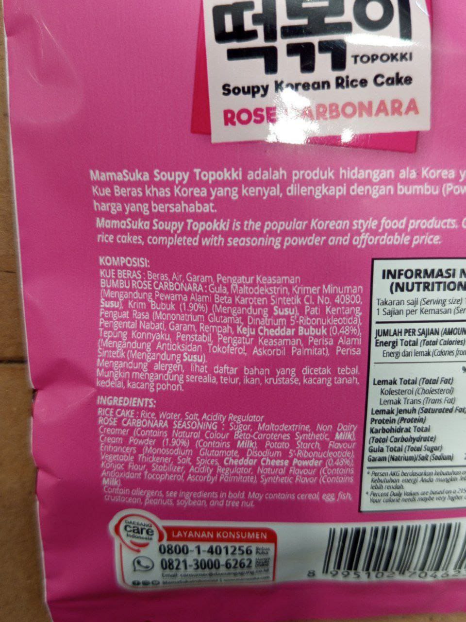 Nikmati sensasi cita rasa Korea yang creamy dan pedas dalam satu mangkuk! MAMASUKA Soupy Korean Rice Cake Rose Carbonara menghadirkan perpaduan sempurna antara Tteokbokki lembut khas Korea dengan saus Rose Carbonara yang gurih, creamy, dan sedikit pedas. Dibuat dengan bahan berkualitas tinggi, rice cake-nya kenyal dan mudah menyerap bumbu, memberikan pengalaman makan yang otentik dan memuaskan.