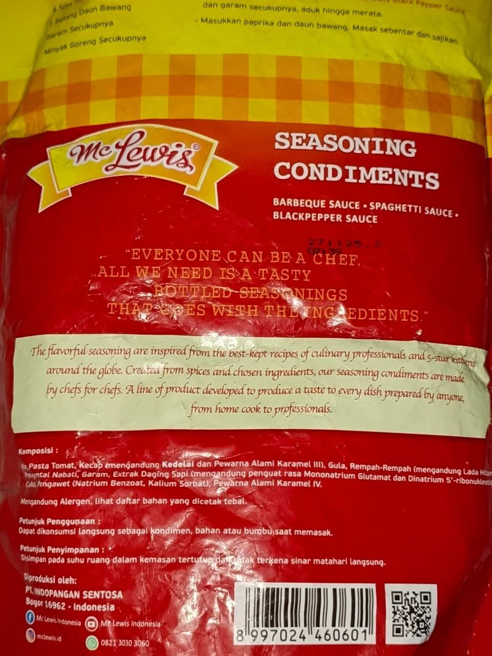 Nikmati kelezatan cita rasa oriental dalam setiap masakan Anda dengan MC LEWIS Blackpepper Saus. Saus lada hitam berkualitas ini dibuat dari perpaduan lada hitam pilihan, rempah khas, dan bahan-bahan premium yang menghadirkan rasa pedas gurih yang khas dan menggugah selera.