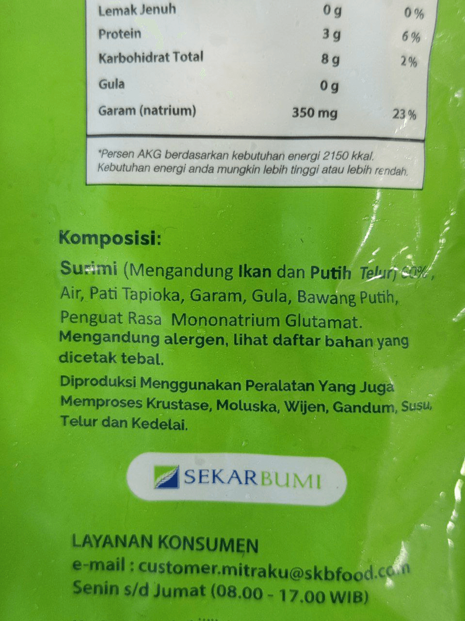 Penyimpanan: Simpan dalam freezer suhu -18°C