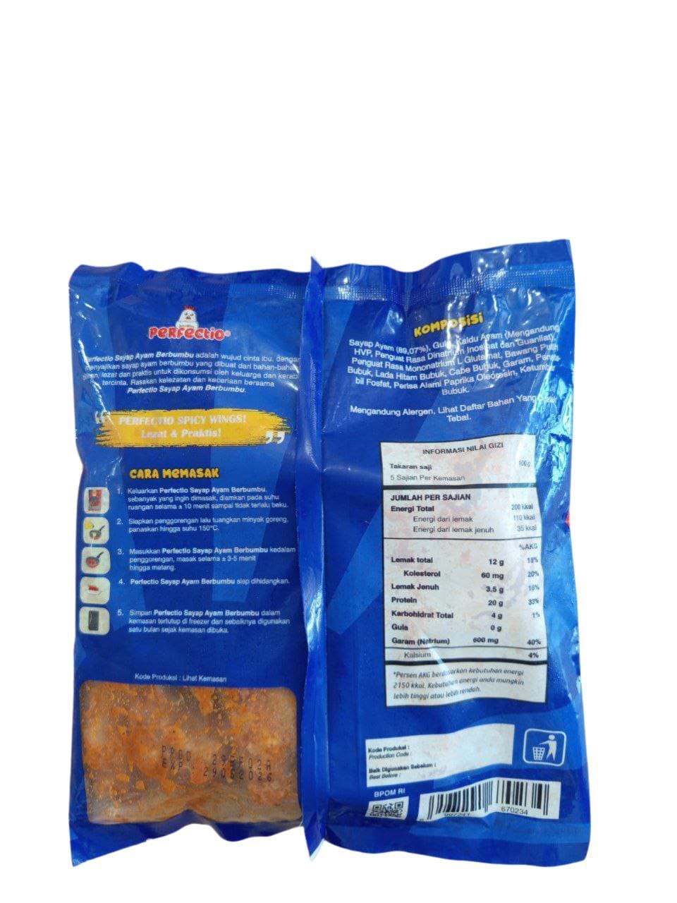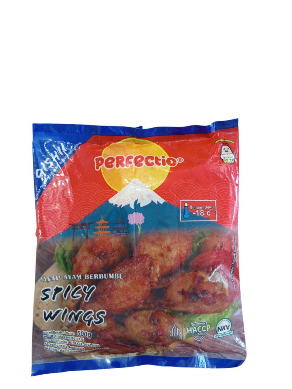 PERFECTIO Wings 500gr hadir dengan potongan sayap ayam berkualitas, sudah dibumbui dan siap dimasak. Cocok untuk camilan keluarga, menu usaha kuliner, atau stok di freezer rumah.