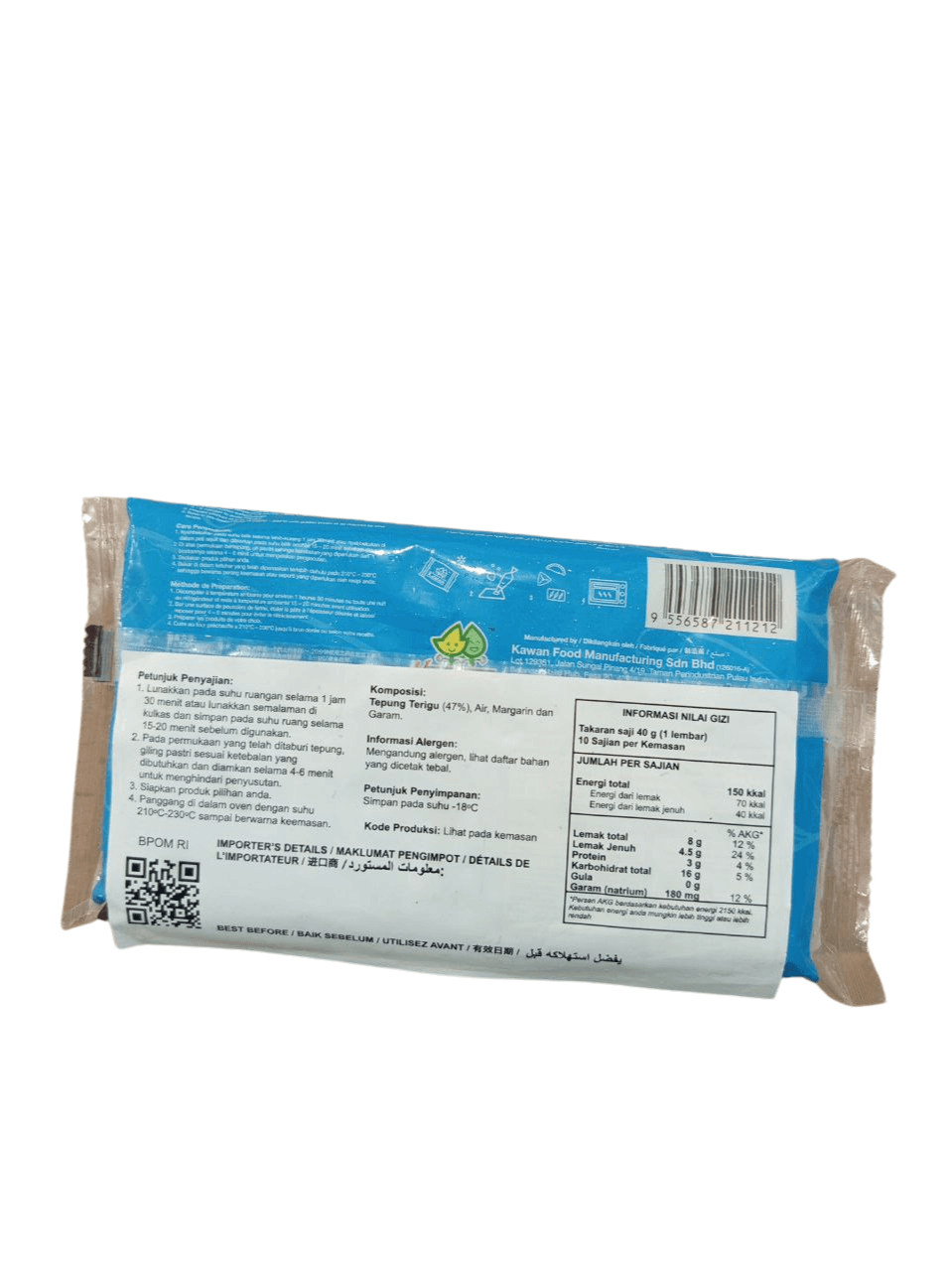 Nikmati kemudahan membuat camilan dan hidangan lezat dengan PUFF Pastry Block isi 10 pcs! Dibuat dari bahan-bahan berkualitas tinggi, puff pastry ini memiliki tekstur yang renyah di luar dan lembut di dalam setelah dipanggang. Cocok untuk berbagai kreasi seperti croissant, pastel, mille-feuille, dan aneka pastry manis maupun gurih.