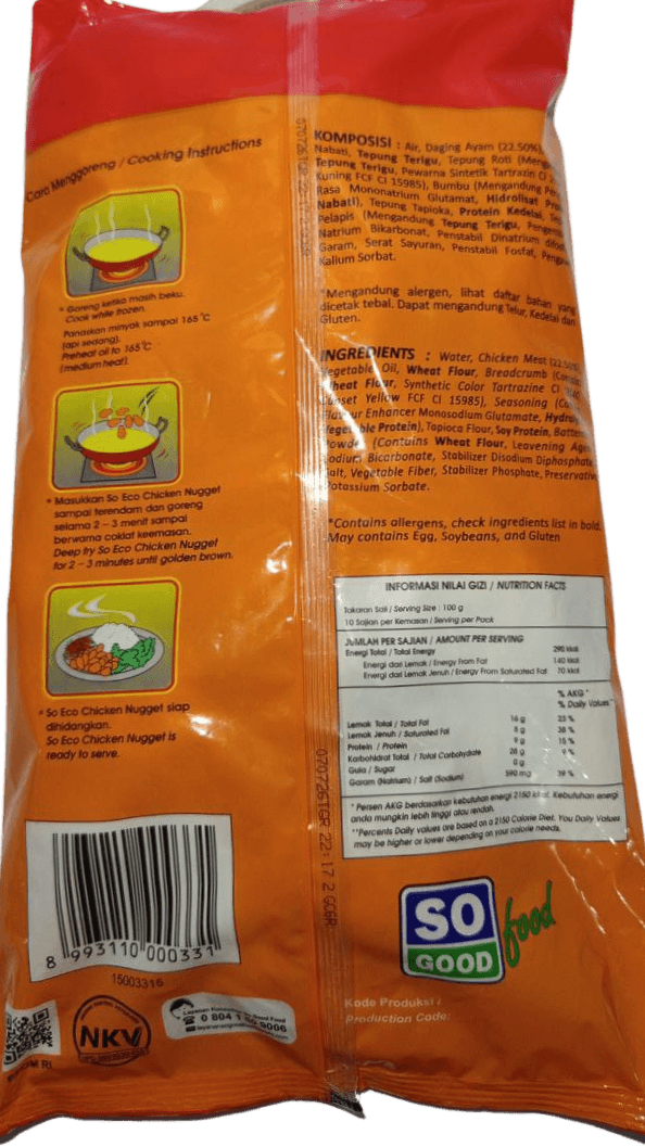 Nikmati kelezatan praktis dalam setiap gigitan dengan SO ECO Chicken Nugget 1kg. Dibuat dari daging ayam pilihan berkualitas tinggi, nugget ini memiliki tekstur renyah di luar dan lembut di dalam. Cocok disajikan sebagai lauk, camilan keluarga, atau hidangan praktis saat waktu terbatas.
