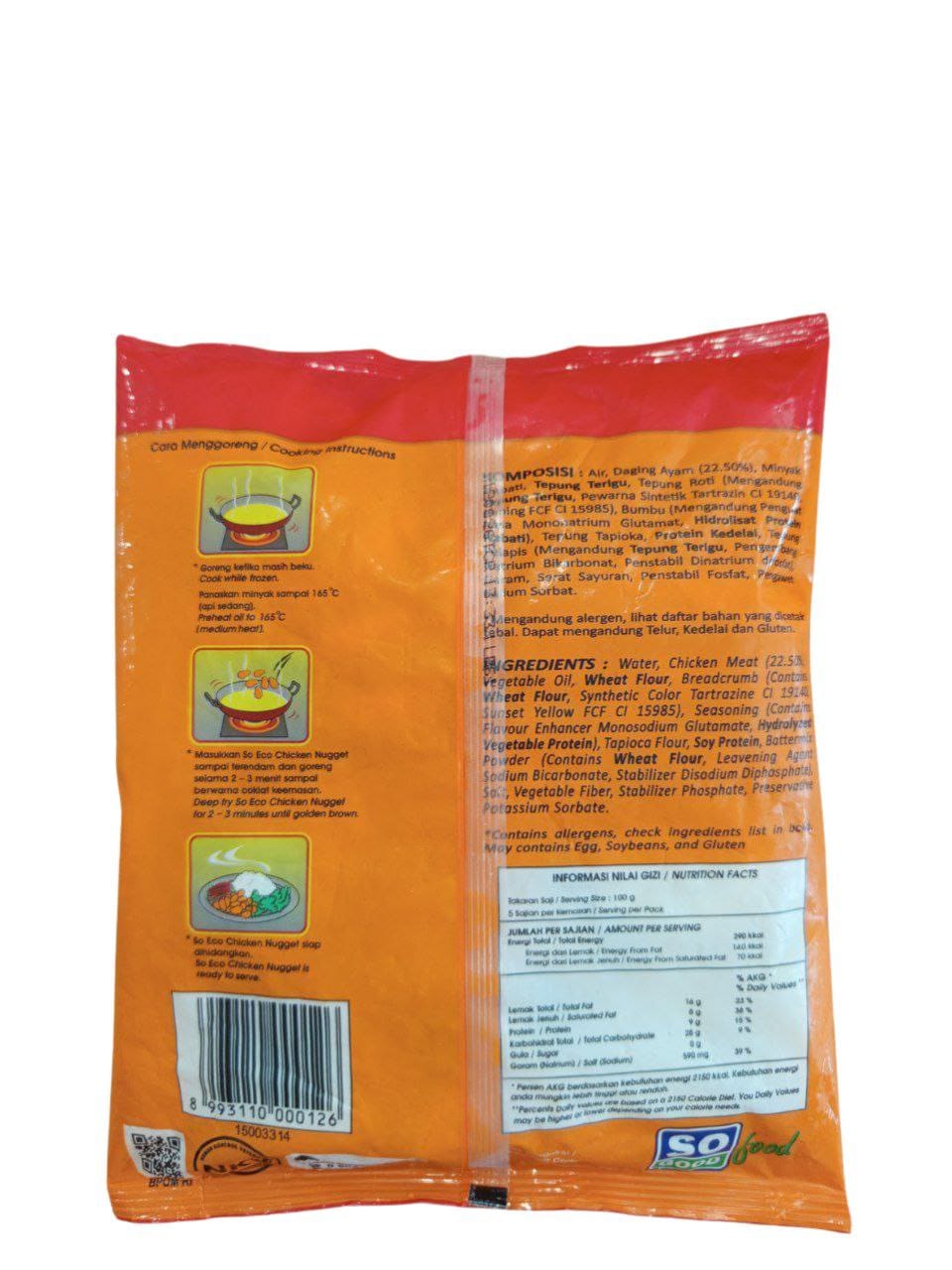 Cukup digoreng dalam beberapa menit, nugget ini menghasilkan tekstur renyah di luar dan lembut di dalam. Tanpa pengawet berlebih dan dengan kualitas bahan yang terjaga, SO ECO Chicken Nugget menjadi pilihan cerdas untuk makanan cepat saji yang tetap lezat.