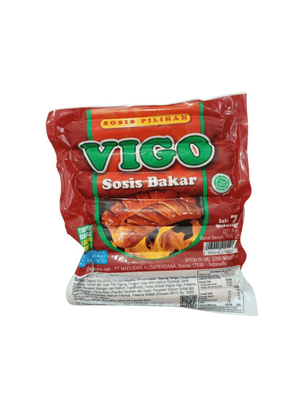 VIGO Sosis Sapi adalah pilihan tepat untuk camilan cepat saji maupun pelengkap menu harian. Dibuat dari daging sapi berkualitas, sosis ini memiliki tekstur yang lembut dan rasa gurih yang disukai semua usia. Dalam satu kemasan berisi 30 pcs (630 gram), pas untuk stok keluarga atau usaha kuliner.