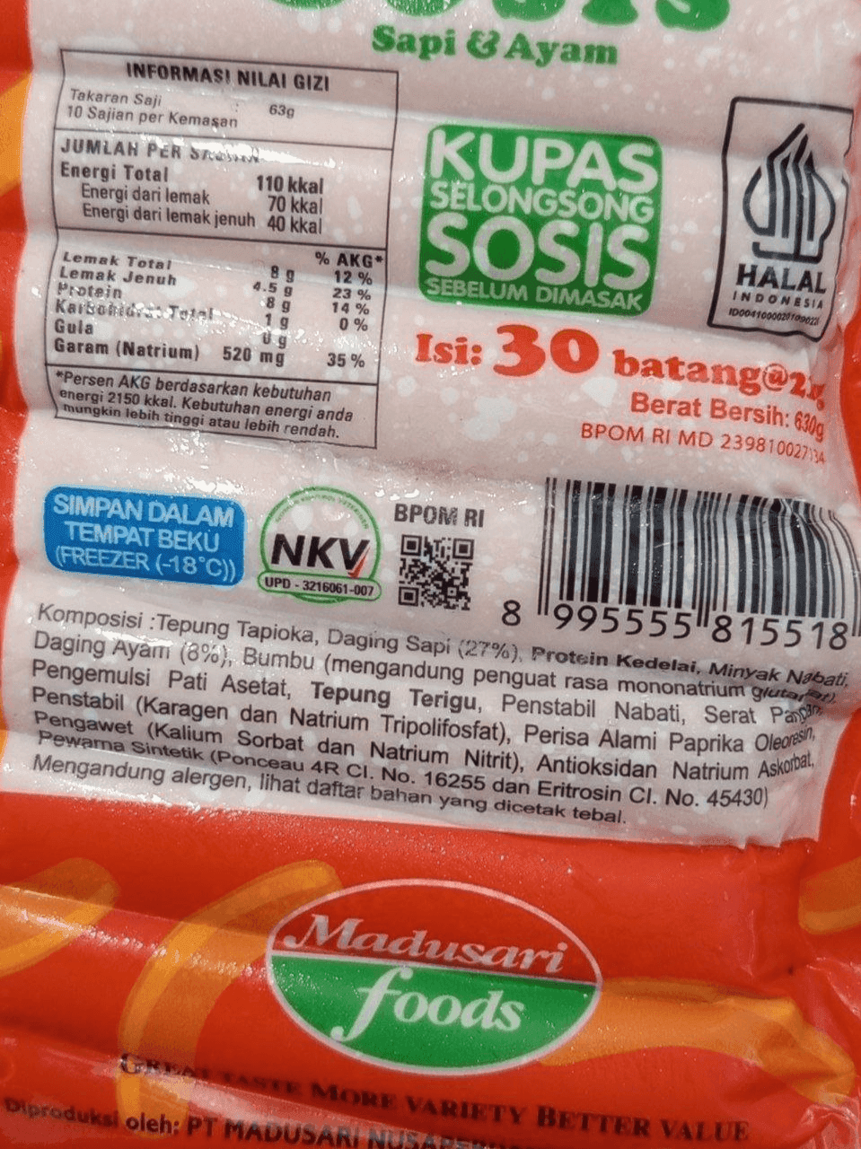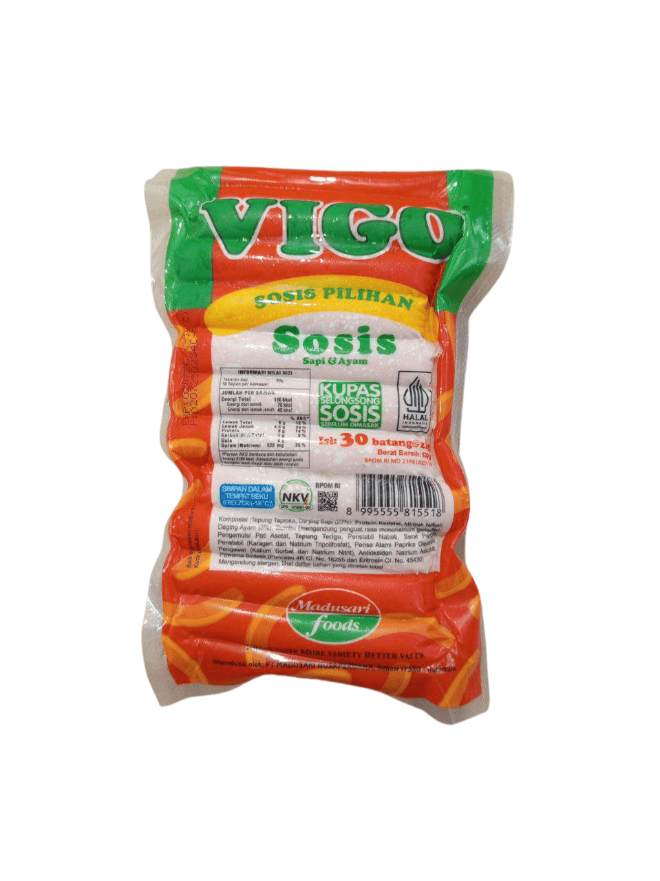 VIGO Sosis Sapi adalah pilihan tepat untuk camilan cepat saji maupun pelengkap menu harian. Dibuat dari daging sapi berkualitas, sosis ini memiliki tekstur yang lembut dan rasa gurih yang disukai semua usia. Dalam satu kemasan berisi 30 pcs (630 gram), pas untuk stok keluarga atau usaha kuliner.